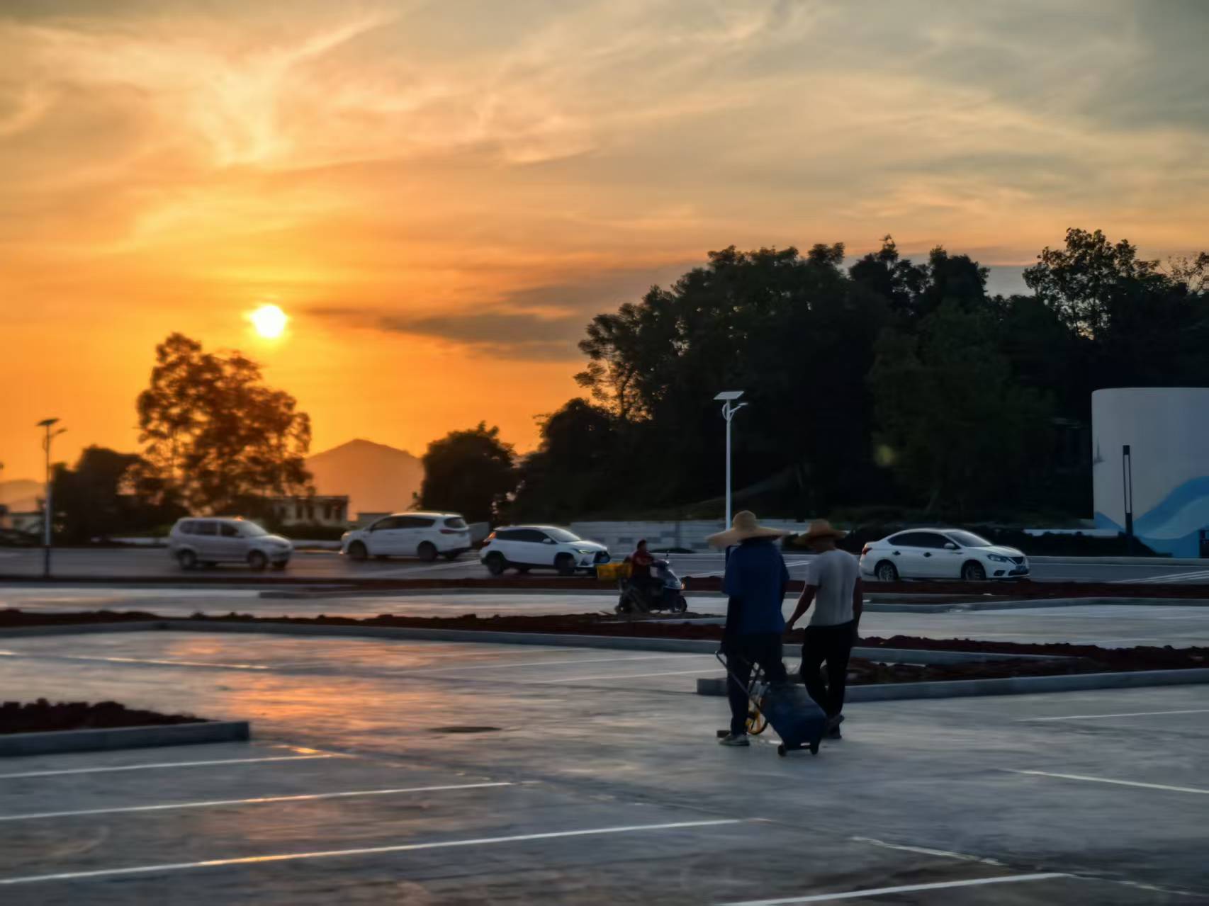 在云帆公园旁的停车场建设现场,施工负责人表示:“我们正抓紧晴好天气,利用早晚时间赶工,确保在国庆前投入使用。”傍晚时分,施工人员借着霞光余晖,细心划设停车位标线,每一道工序都严格把关,确保工程质量。