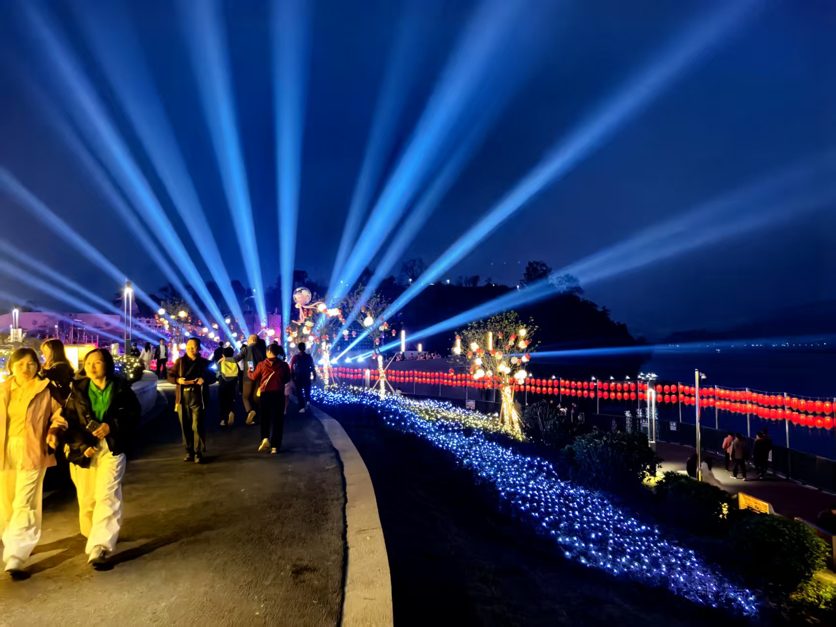 西江汤汤,又一岁新春将临。湾边岸畔,千盏花灯粲然亮起,静候归人。