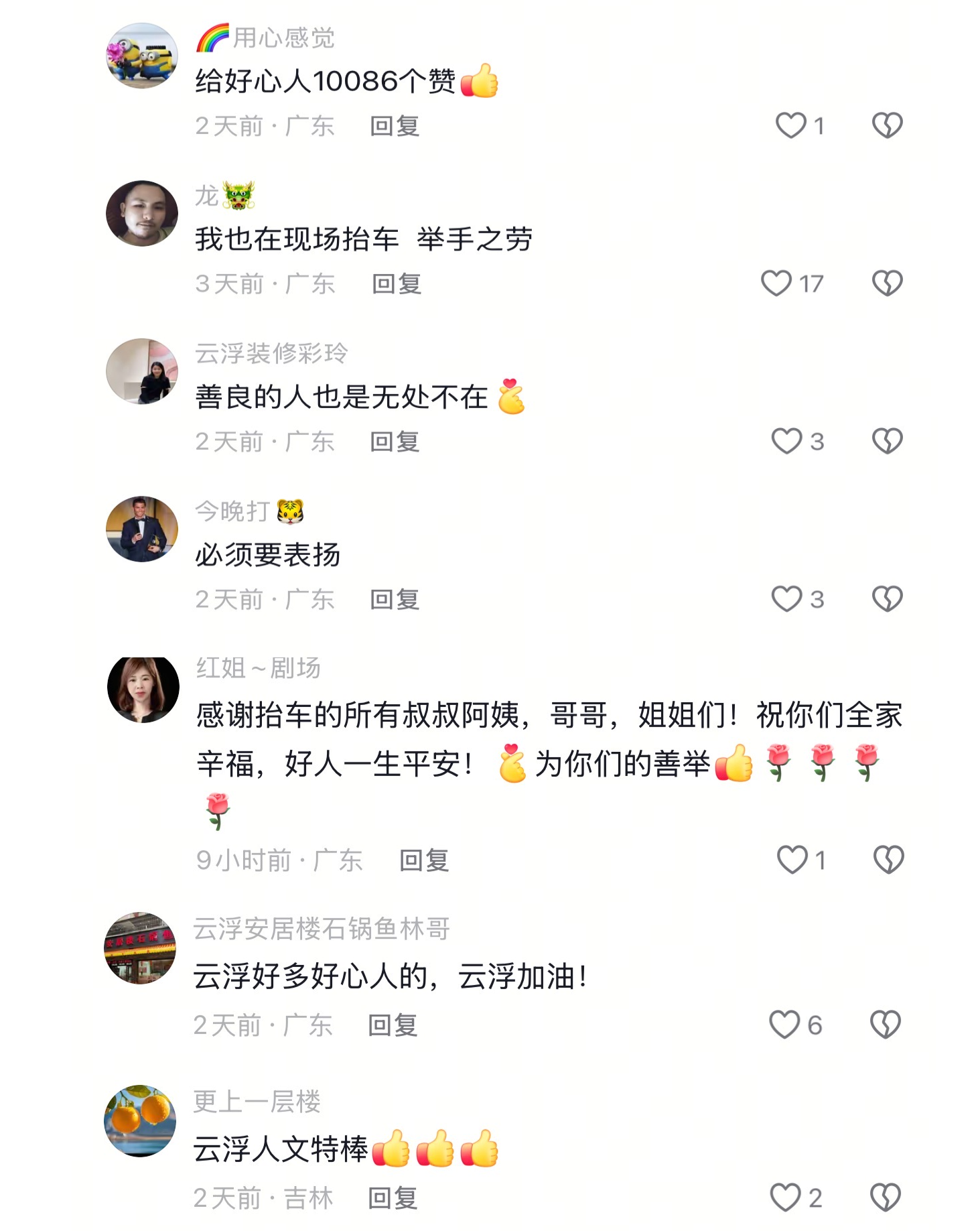 ▲不少网友在此前《危急时刻!云浮热心市民合力抬车救人》视频报道评论区留言。