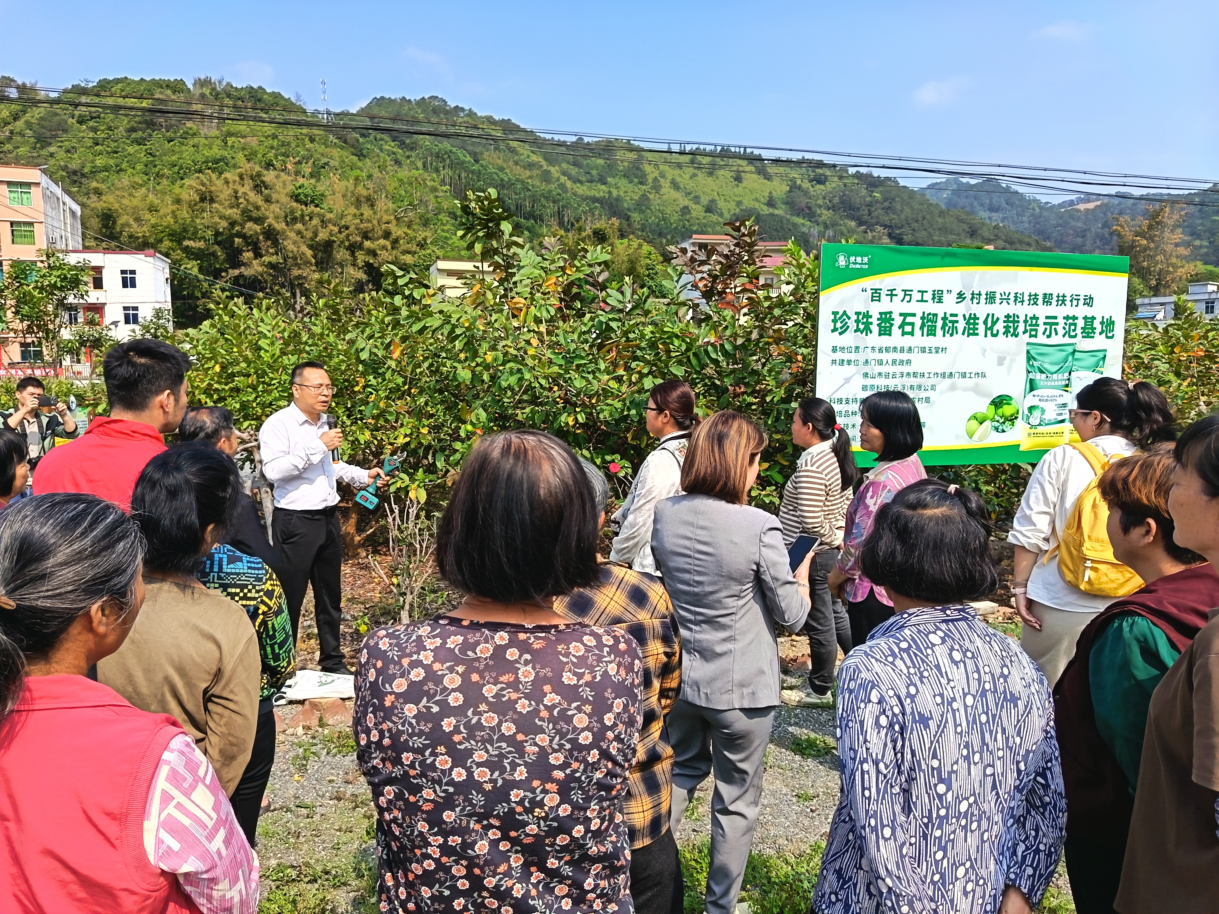 当天,由驻镇工作队推动的“通门镇2026年番石榴种植技术培训班”在这里举行,邀请县农业综合服务中心高级农艺师杨伟成现场授课,并携手爱心企业碳原科技(云浮)有限公司共建帮扶,近40名种植户、村干部参加培训。