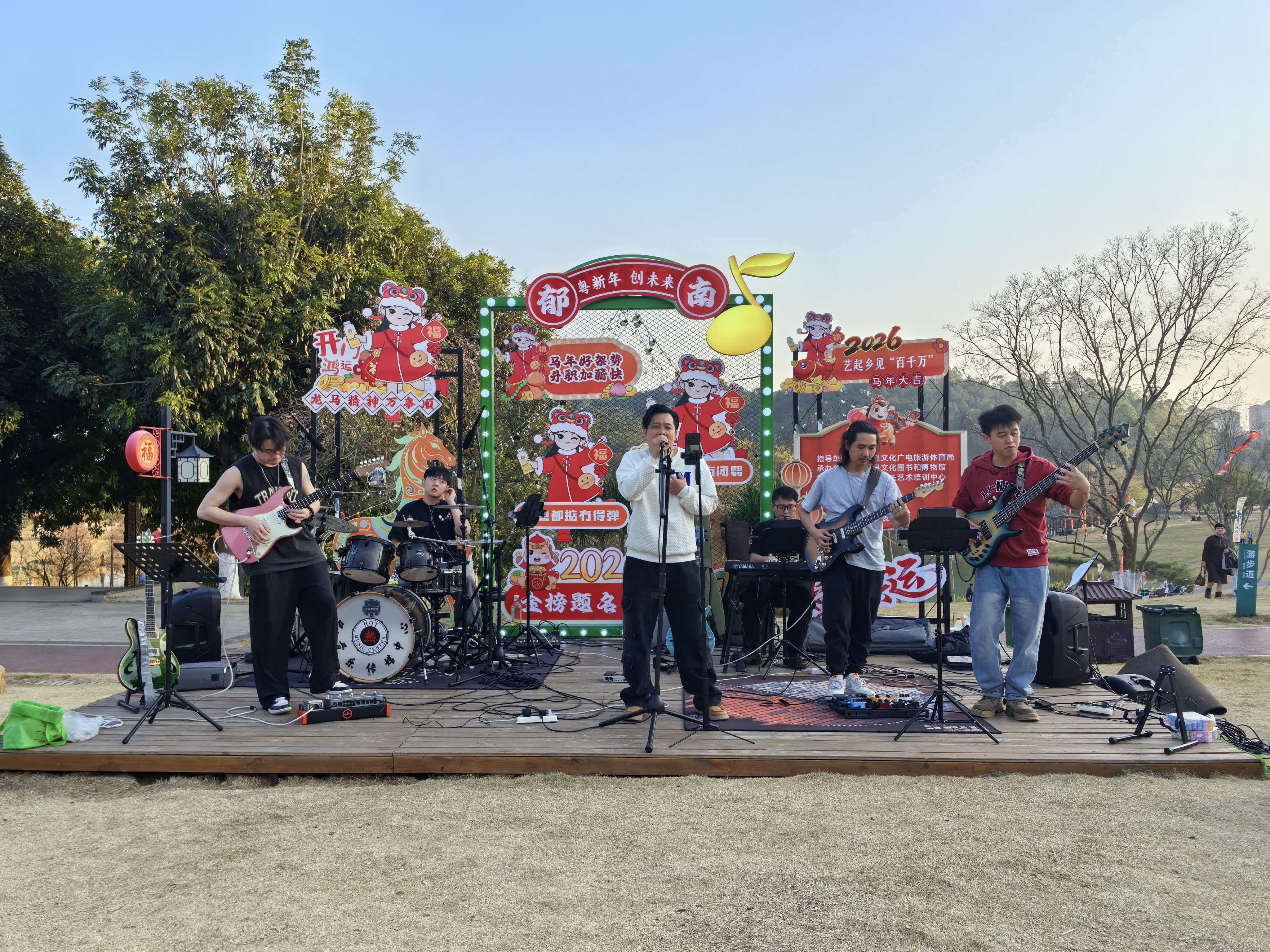 1月15日(年廿八),2026年郁南县迎新春体育健身嘉年华在都城镇城中公园拉开帷幕。伴随着欢快的音乐,多支广场舞队伍踏歌起舞,用舒展的舞姿迎接新春的到来,现场洋溢着浓郁的生活气息和节日氛围。