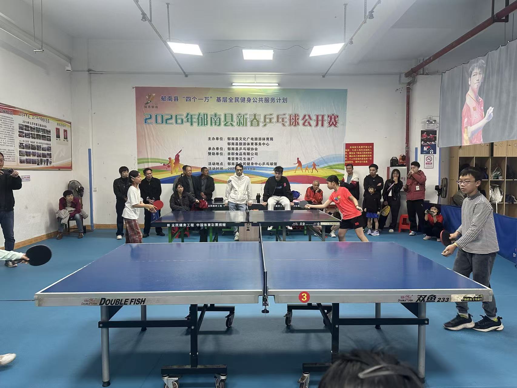 农历正月初三,乒乓球公开赛在郁南县全民健身中心乒乓球馆激烈开赛。方寸球台之间,选手们推挡扣杀、斗智斗勇,紧张的对决引得观众阵阵喝彩,充分展现了国球的魅力。