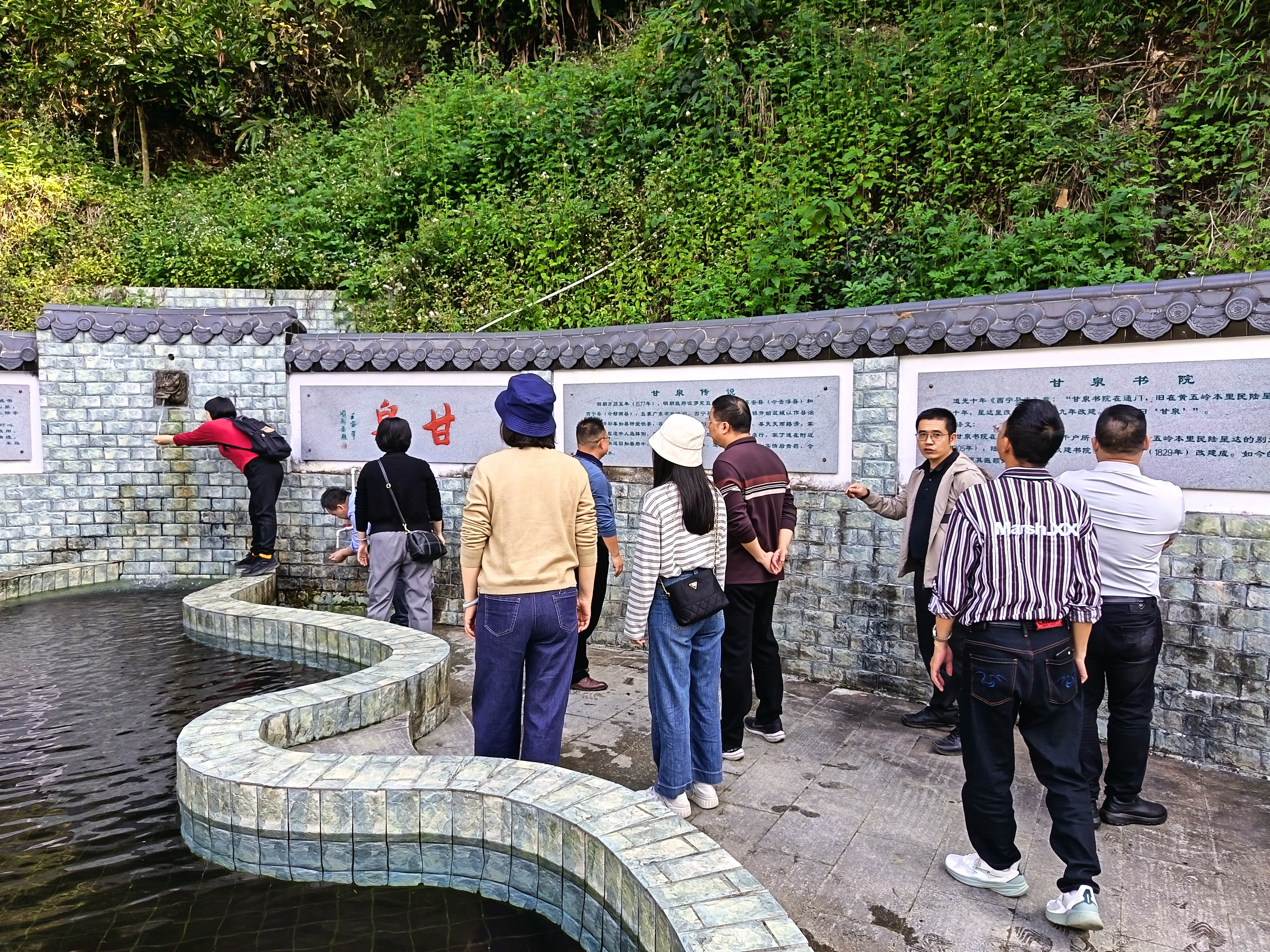 随后,调研组奔赴百贤村委,考察历史悠久的甘泉。该泉开凿于明万历十七年(1589年),迄今已逾四百年,泉水清澈甘甜,冬暖夏凉,每逢七夕当地仍有取水习俗,“甘泉天浚”曾是“西宁八景”之一,留下诸多文人墨客的诗文足迹。调研组建议,要深入挖掘甘泉历史文化内涵,结合乡村旅游与研学教育,赋能乡村经济发展。