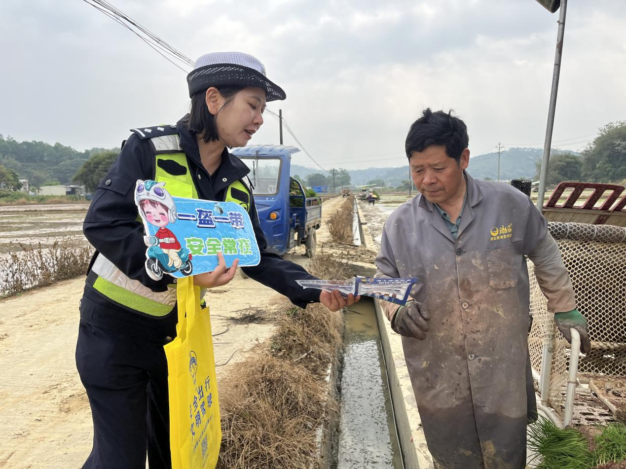 针对不同群体、不同场景,郁南交管大队精准施策,推动宣传触角延伸至社区、农村、场所、企业、校园。在社区,民警通过展板、手册、警示片等形式,向居民普及“一盔一带”、酒驾醉驾等常识,重点讲解老年人出行防护知识;在农村,民警走进田间地头,用方言讲解农用车违法载人、骑乘不戴头盔等风险,紧盯“一老一小”群体,以案说法;在商场、车站等人员密集场所,通过宣传点位、横幅、案例视频滚动播放,让交通安全“入眼入心”。