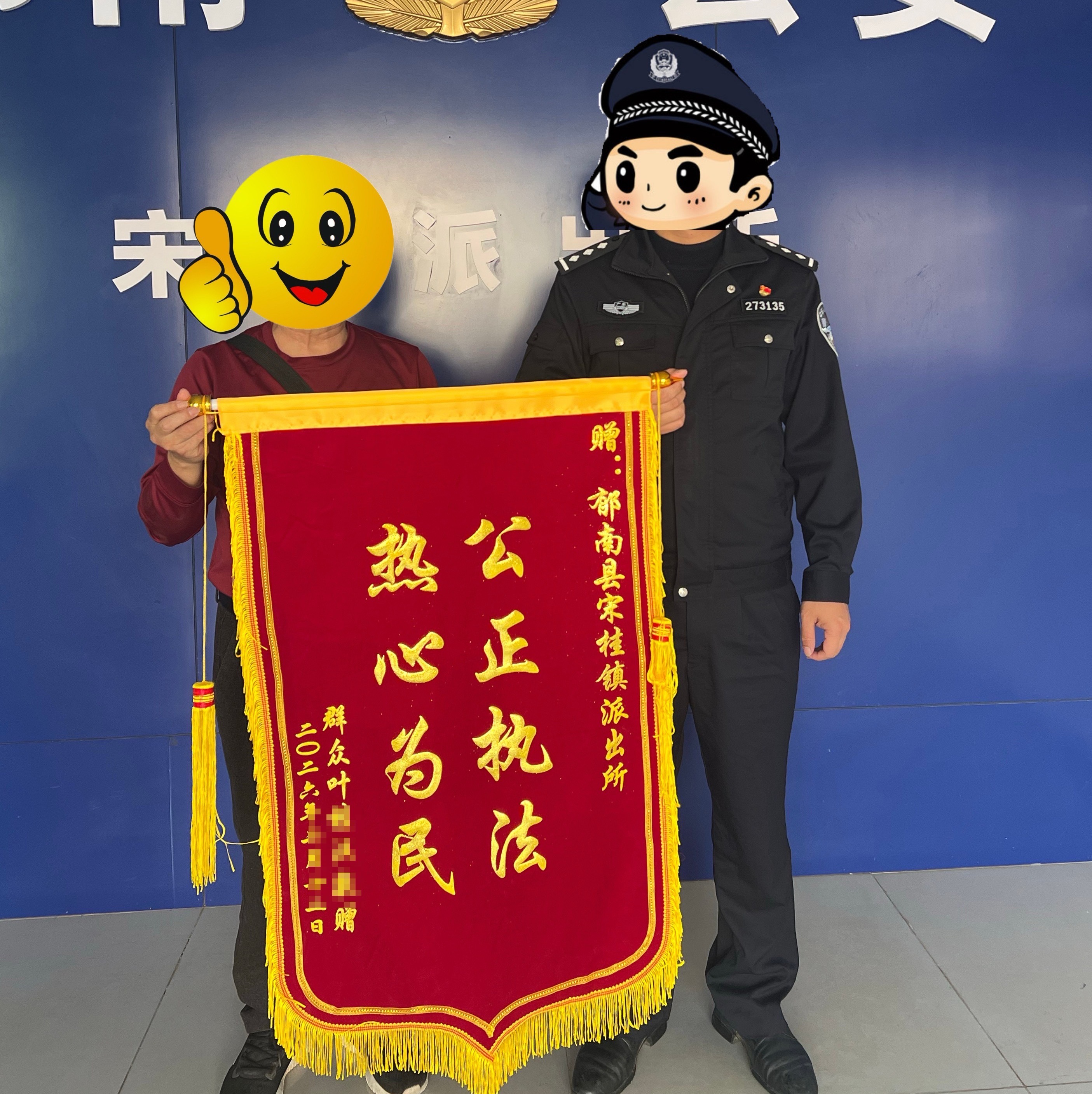 在宋桂镇,一桩困扰叶先生多年的土地纠纷,终于在民警的耐心调解下画上句号。依托“公安+综治+行政执法”协同机制,宋桂派出所民警多次上门沟通、情理法并用,最终促成叶先生与堂兄弟握手言和。为表感激,叶先生将一面写有“公正执法 热心为民”的锦旗送到派出所,感谢民警用心用情化解矛盾。