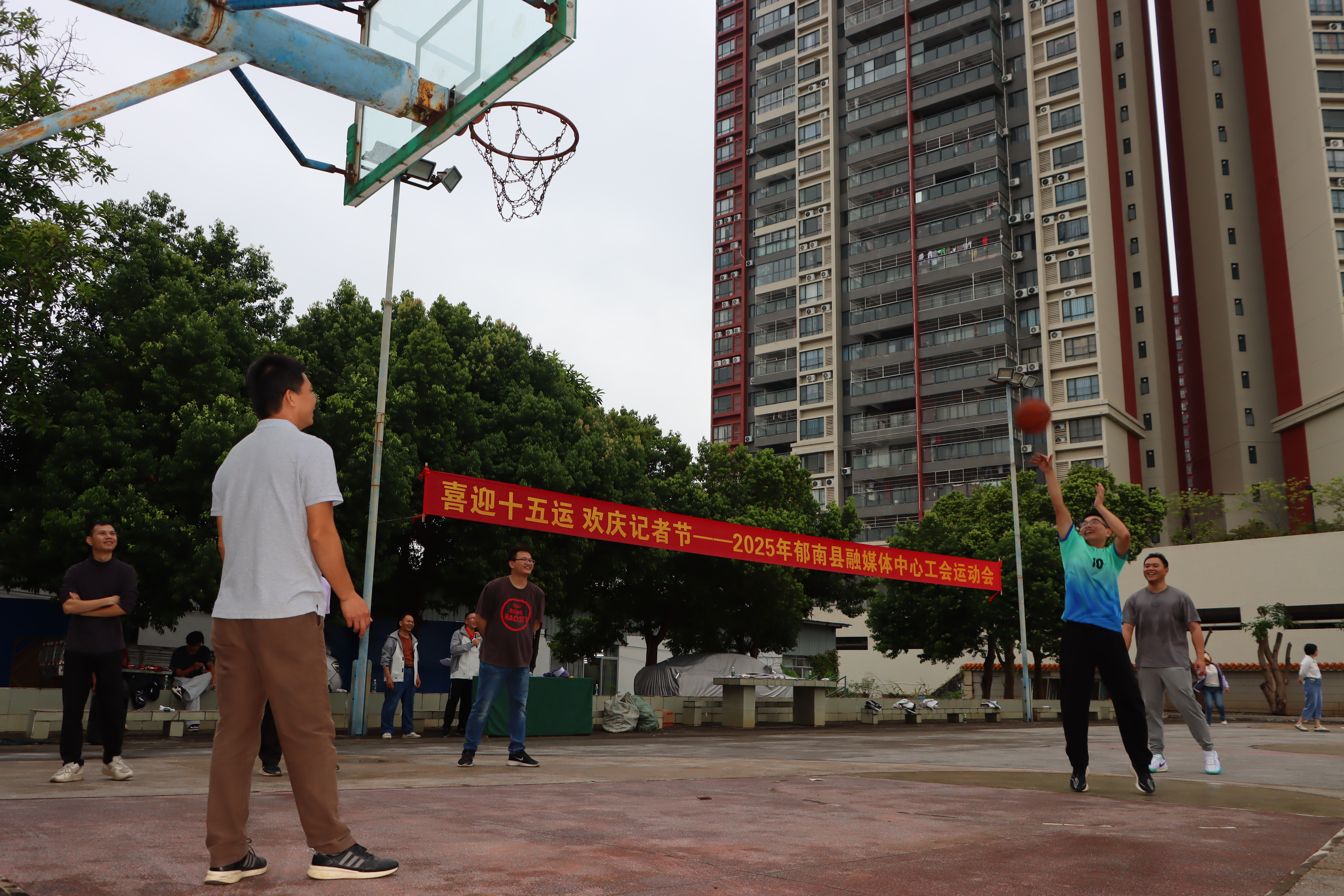 活动现场设置了拔河比赛、定点投篮球等多个趣味项目。平日里手持话筒、相机的新闻人,在赛场上化身运动健将。拔河比赛中,各组队员紧握长绳、齐心协力,现场加油声、呐喊声此起彼伏,将团队协作精神展现得淋漓尽致。定点投篮环节,参赛者屏息凝神、精准投射,篮球划出优美弧线入网时,场边爆发出阵阵欢呼。活动不仅设置了团队竞技项目,还穿插了趣味互动环节,让参与者在汗水与欢笑中释放工作压力,感受运动的快乐。