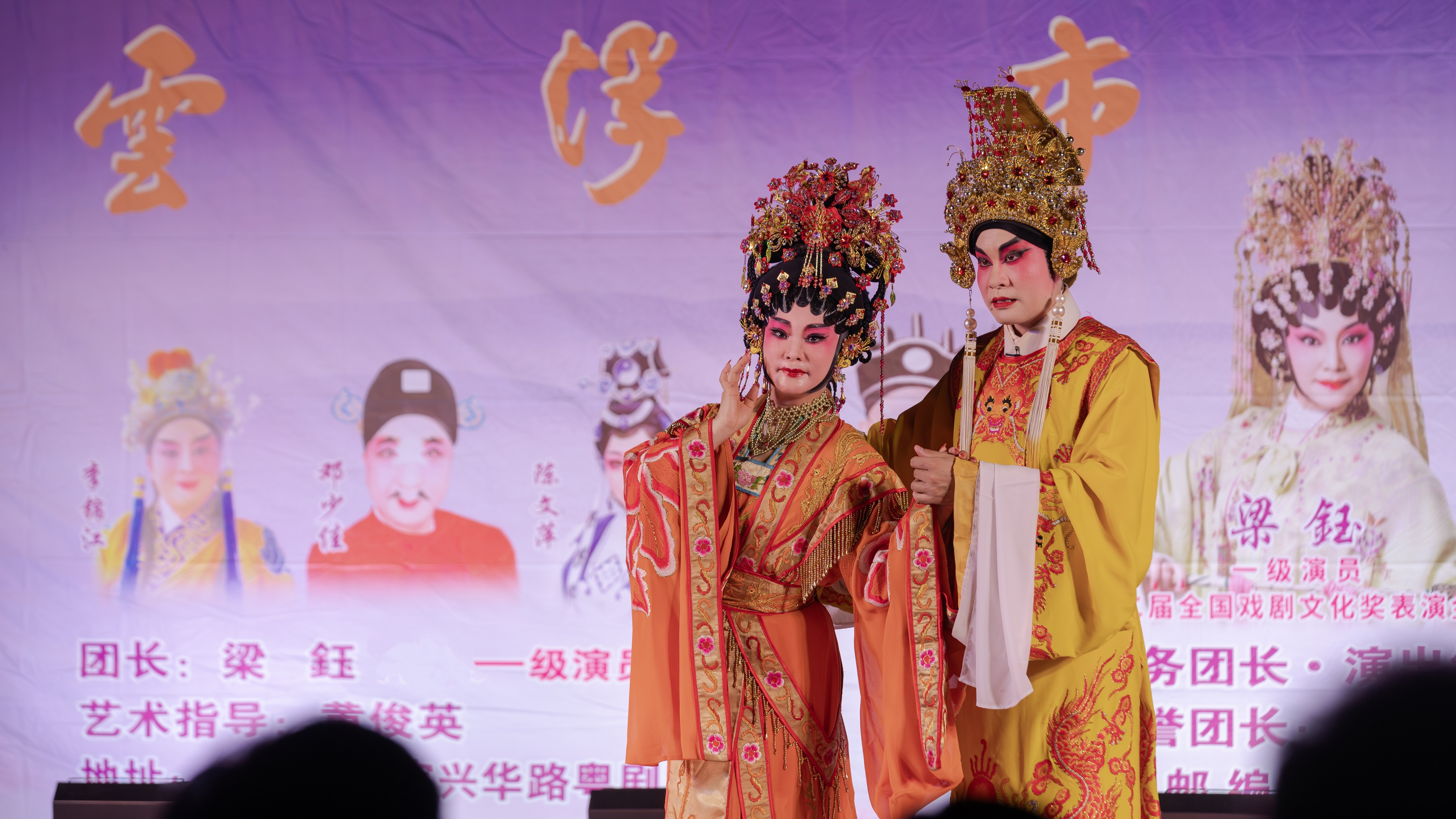 活动现场气氛热烈,村民们早早聚集,呼朋唤友、扶老携幼,等候精彩开场。粤剧演员们功底扎实、唱腔铿锵有力,动作一板一眼,一招一式张弛有度,精彩的表演引得台下观众笑声、掌声不断,让当地村民过足了戏瘾。演出的剧目有《父老乡亲》《洛神之修书》《游园惊梦》《人民就是江山》《再进沈园》《七月七日长生殿》等。台下村民看得入神,大家举着手机记录精彩瞬间,掌声接连不断,乡村小广场变成了热闹的“文化大舞台”。
