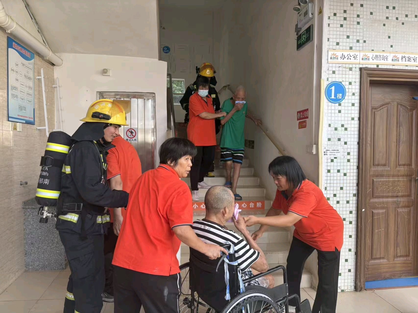 实操培训完成后,疏散演练环节紧接着展开。考虑到老人行动较慢,消防员提前和工作人员敲定“分组引导、专人协助”的方案。演练开始后,工作人员有序搀扶老人,提醒大家用手捂住口鼻、弯腰低姿前行;消防员穿梭在队伍中,不时轻声喊着“慢一点,注意脚下台阶”,全程守护。最终,所有老人都安全、有序到达集合点,疏散演练顺利完成。