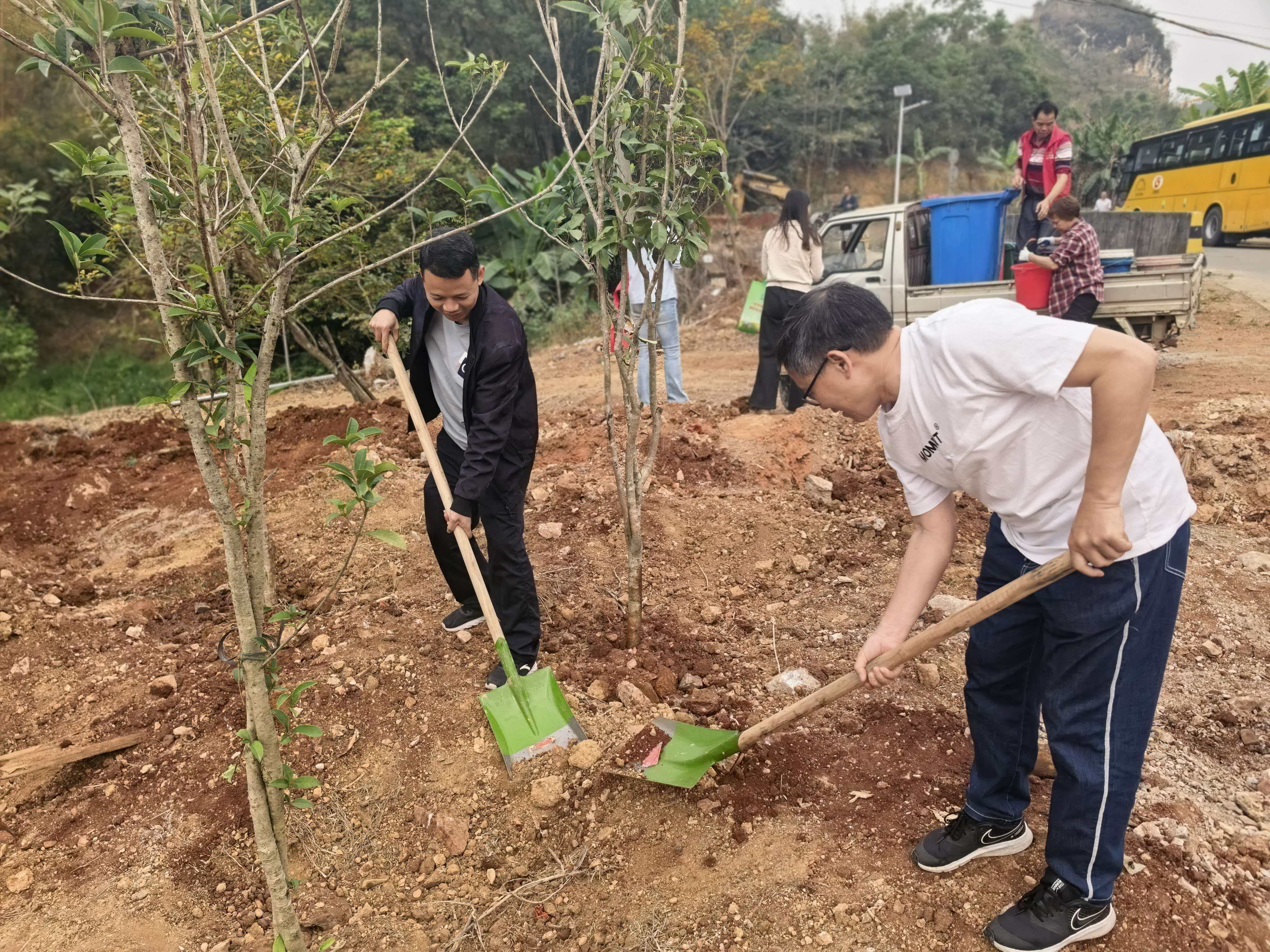 新春添新绿。近日,云浮市人大、市民政局、市妇联、市贸促会、市自然资源局、团市委等帮扶单位领导干部及党员志愿者,深入郁南县东坝镇开展新春义务植树活动,以实际行动践行习近平生态文明思想,厚植绿色发展底色,开启新年实干征程。