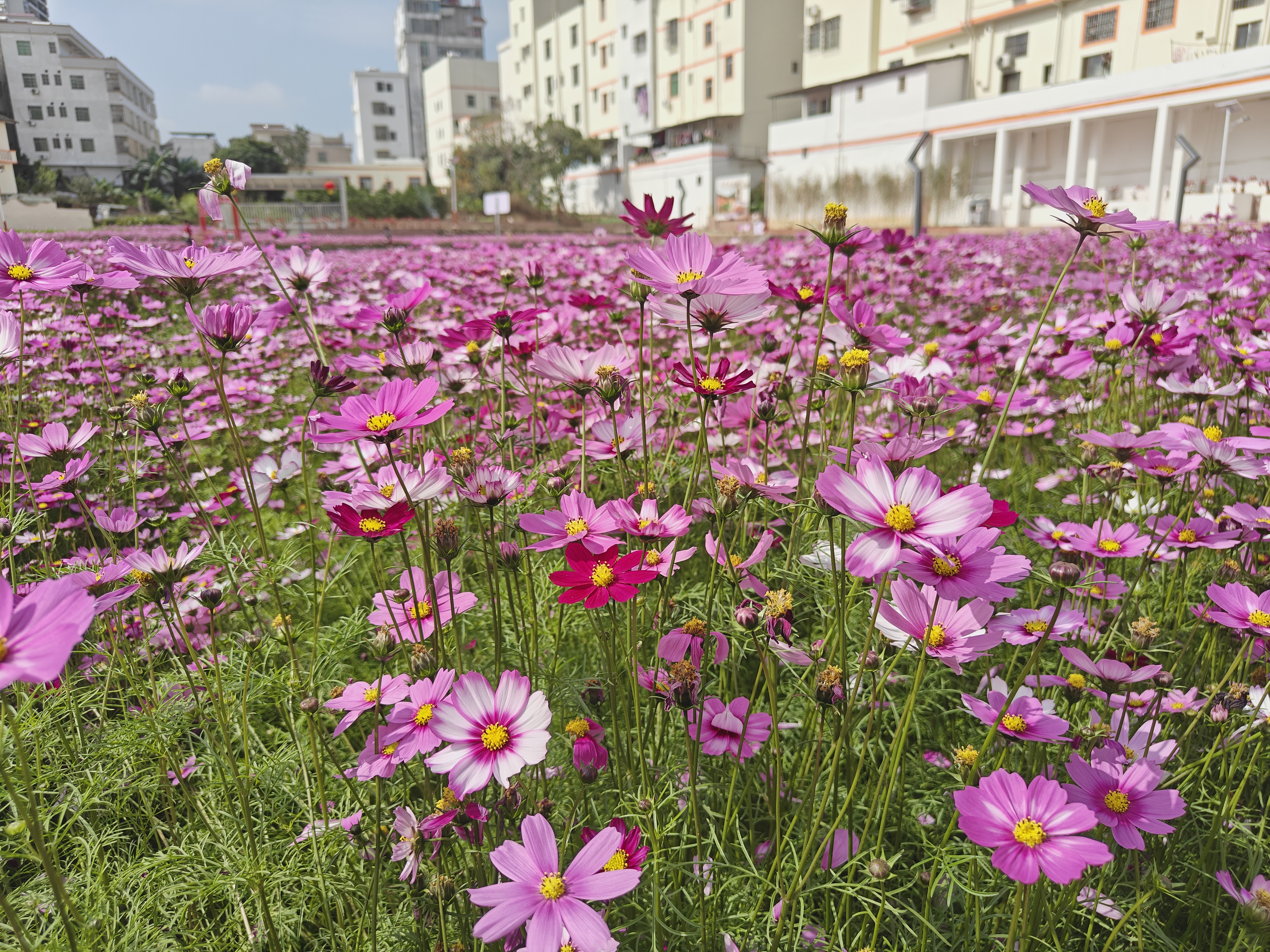 近日,郁南县河口社区一片近2000平方米的格桑花海绚烂绽放,成为居民家门口的“生态会客厅”。这里原是体育公园旁的一处闲置边角地,杂草丛生、无人问津。如今,通过2025年镇“百千万工程”的精细改造,摇身一变成为花开成海、人气旺盛的社区新景。