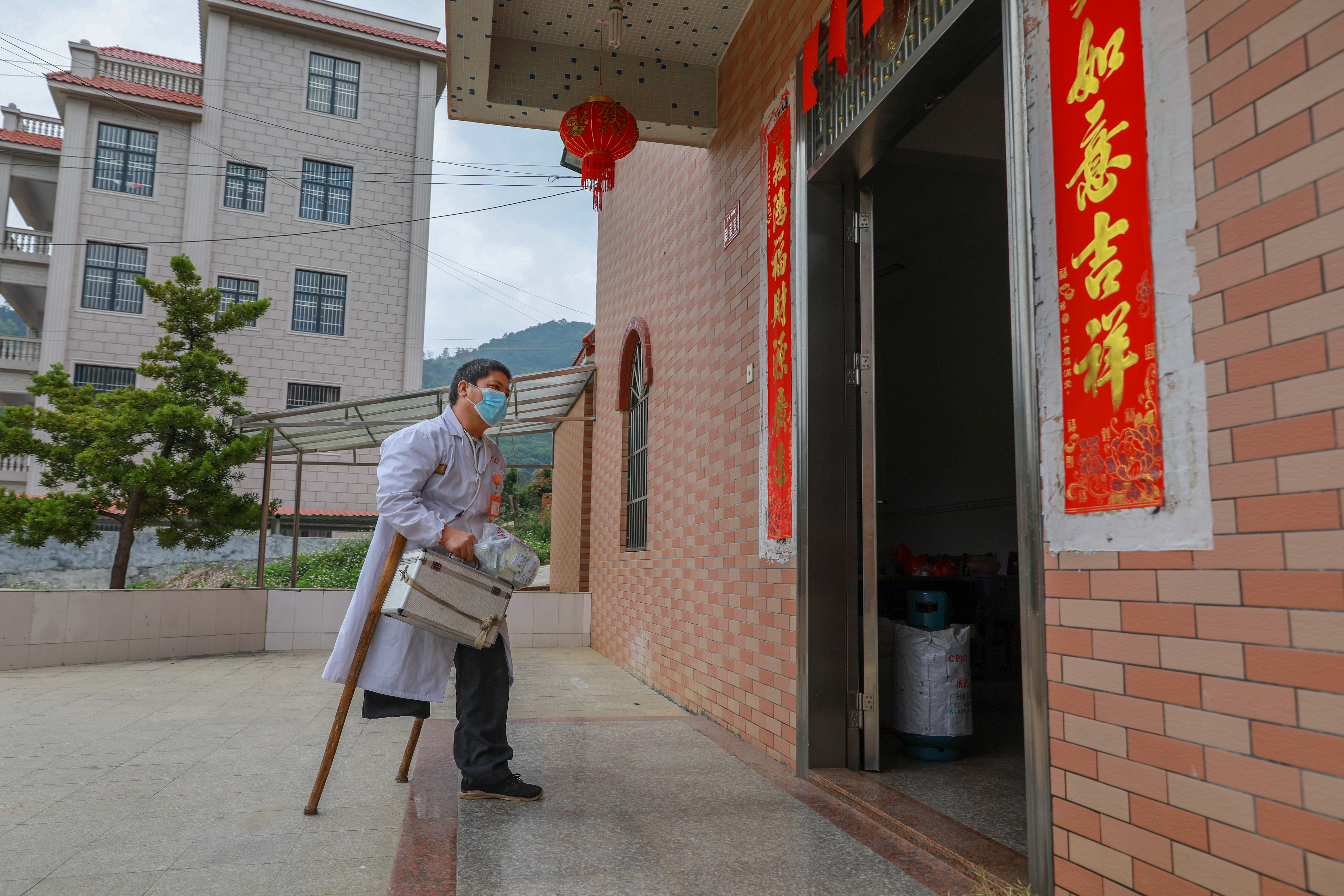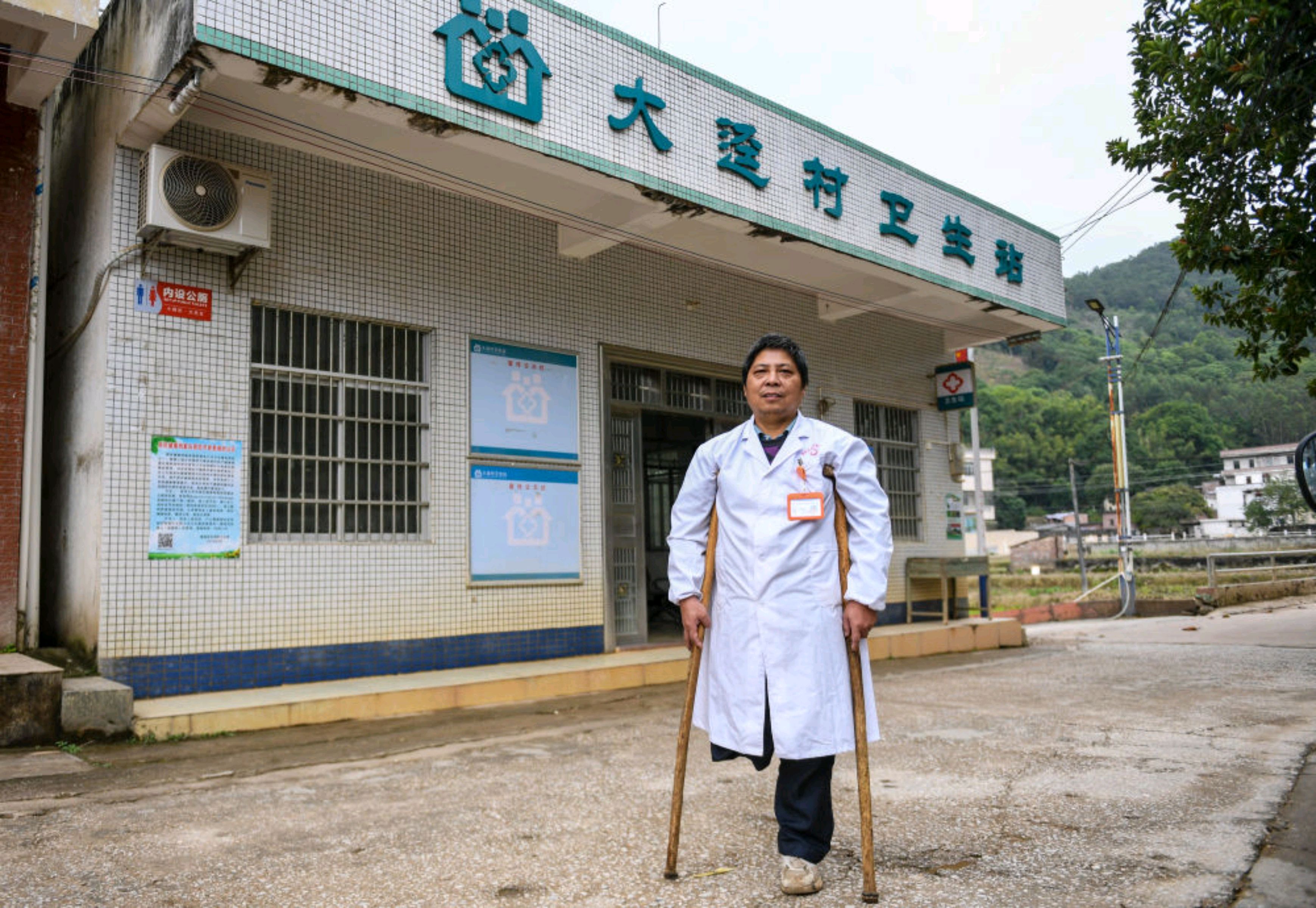 在该村2500多口人心里,64岁的郑仁才不仅是穿白大褂的村医,更是随叫随到的“亲人”。而这位亲人,走路离不开一副自制的木拐杖。