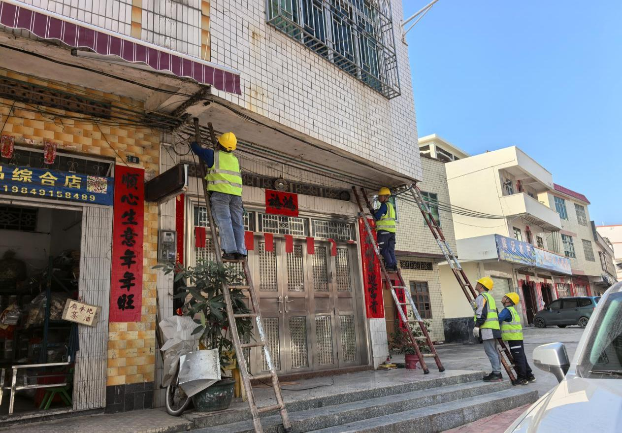 清理空中管线,擦亮圩镇“天际线”。 针对纵横交错、杂乱下垂的电力、通信、网络等线路,宋桂镇协调供电、电信、广电等单位开展“三线”专项整治。采取“清理废线、归并散线、捆扎理线、贴墙走线”相结合的方式,对主干道及背街小巷架空线路进行集中规整。目前横跨街道的“三线”均已落地,所有旧线、余缆均已清理完毕。各运营商均已做好各自的主线、入户线规整工作,大幅消除了圩镇的安全隐患,视觉空间明显清朗。