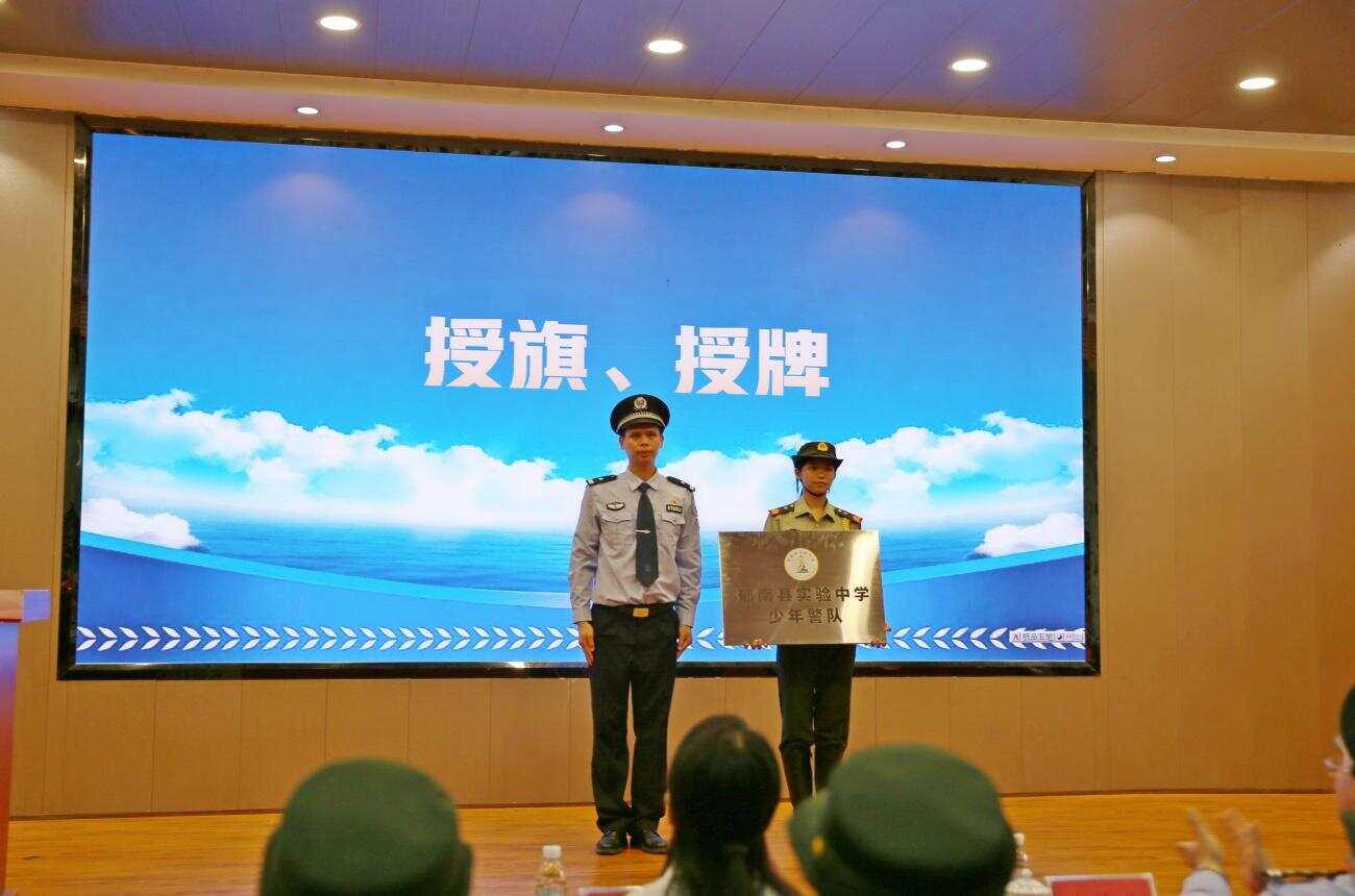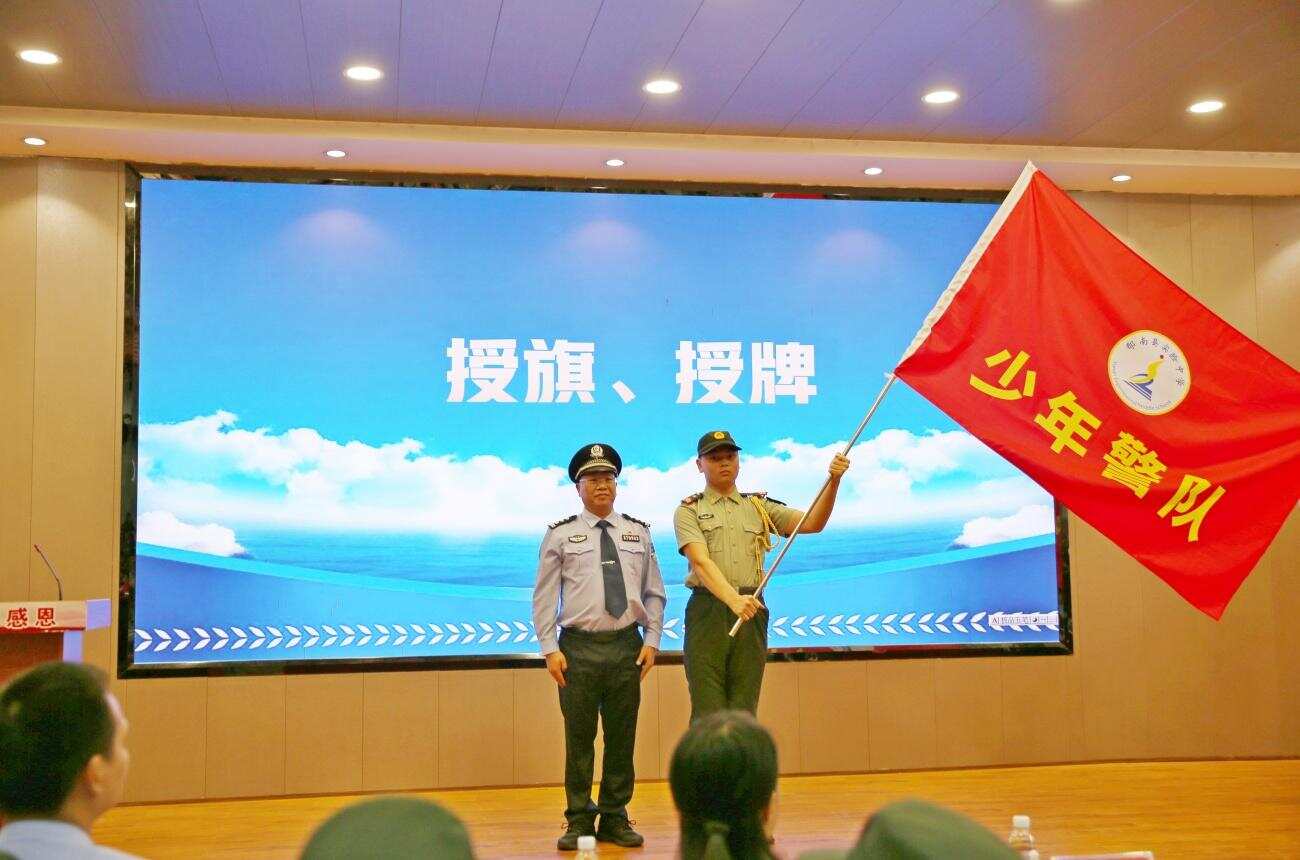 仪式在国歌声中拉开帷幕。与会领导为“少年警队”授旗、授牌。队员们右手握拳,面向队旗庄严宣誓:“我志愿加入少年警队,忠于祖国,忠于人民……”稚嫩而坚定的声音响彻校园。