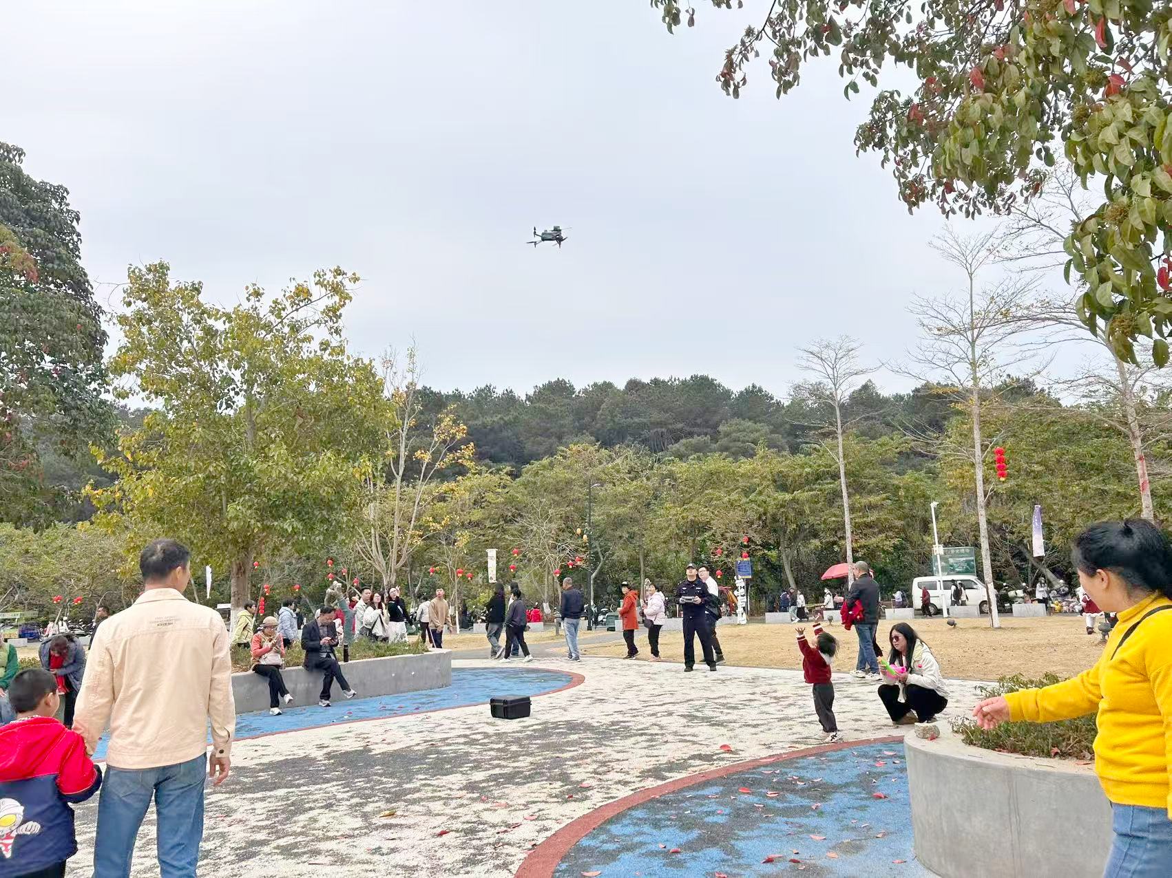 今年春节期间,面对人流、车流激增和治安形势复杂多变的情况,郁南县公安局充分发挥警用无人机在立体化防控体系中的关键作用,构建起“空地一体、全域覆盖、反应灵敏”的智能巡防网络。从繁华的景区到偏远的乡村,从繁忙的交通干线到省际“西大门”,无人机作为“空中尖兵”,与地面警力高效联动,全面提升警务效能,为全县群众营造了一个平安、畅通、祥和的节日环境。