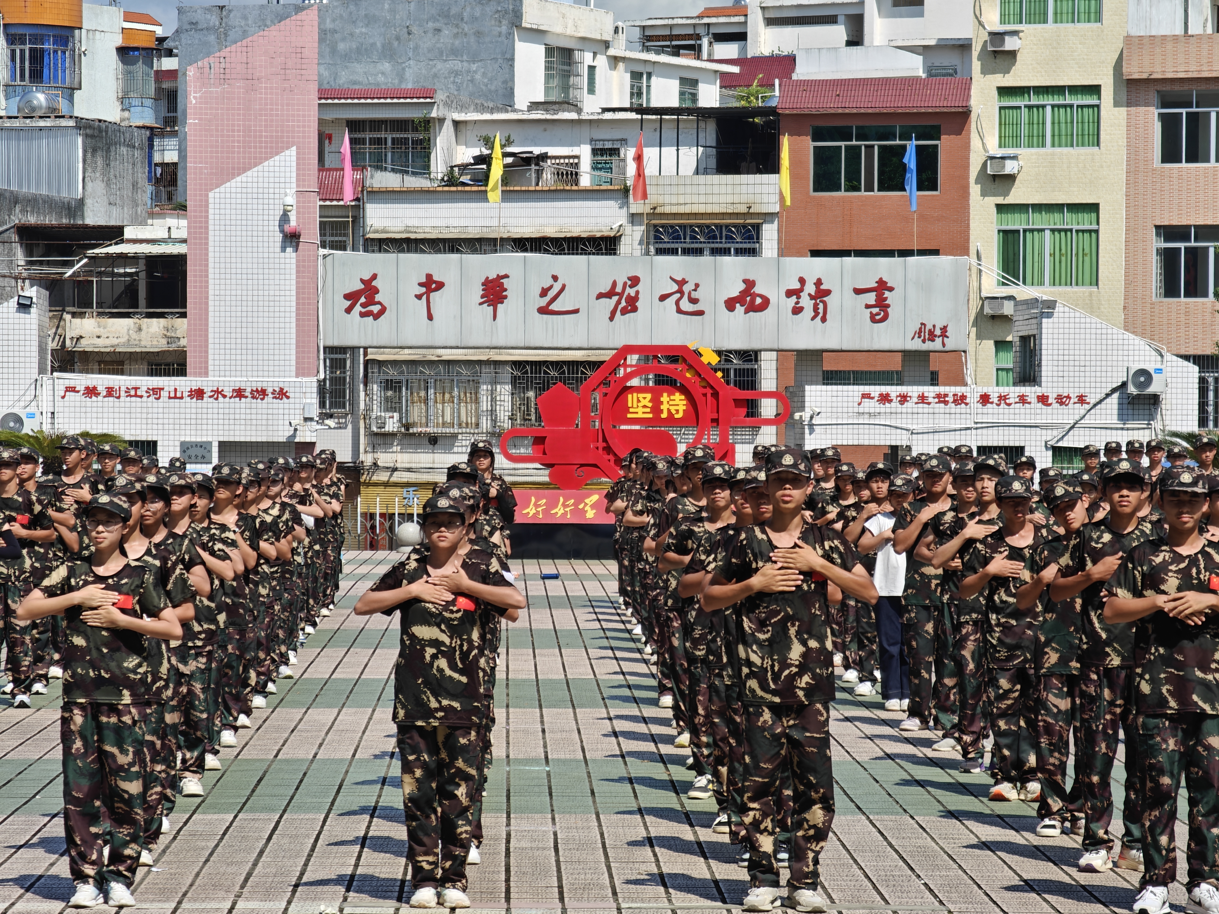 10月15日,郁南县连滩中学高一级新生国防教育结营仪式在庄严的升旗仪式中拉开帷幕。骄阳下,五星红旗与同学们挺拔的身姿交相辉映,爱国情怀在此刻深深植根于每位学子心中。