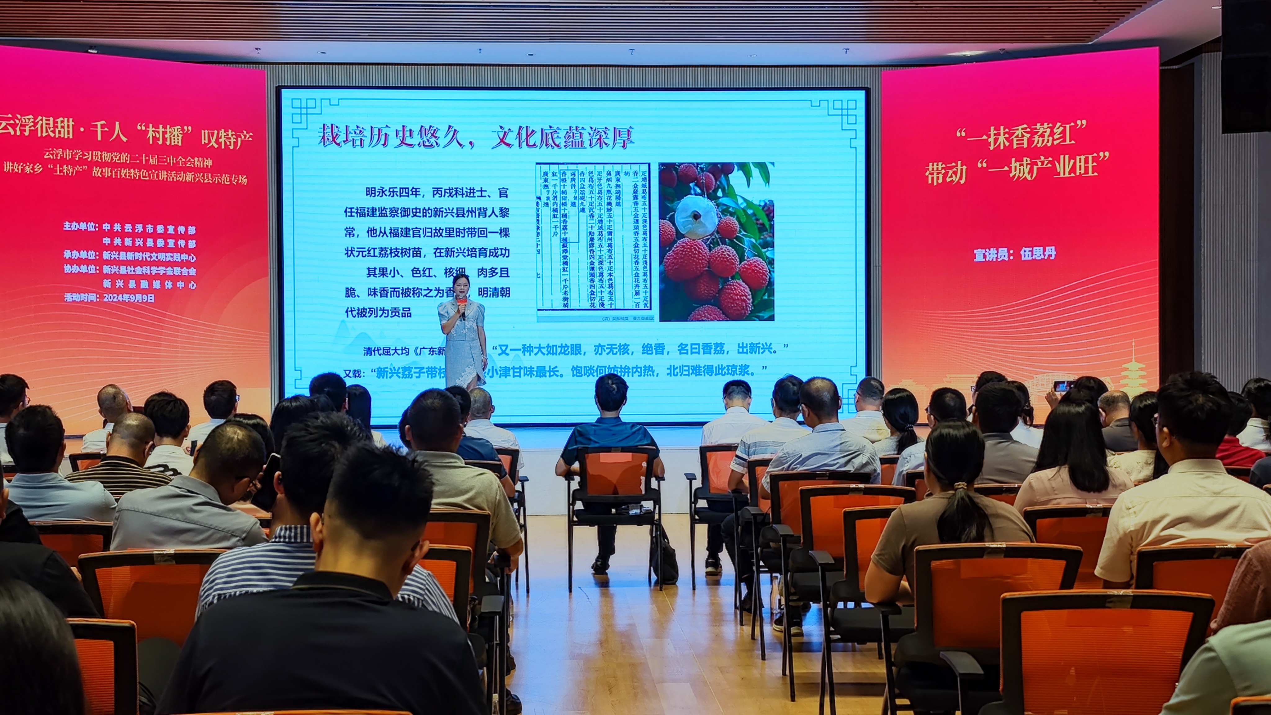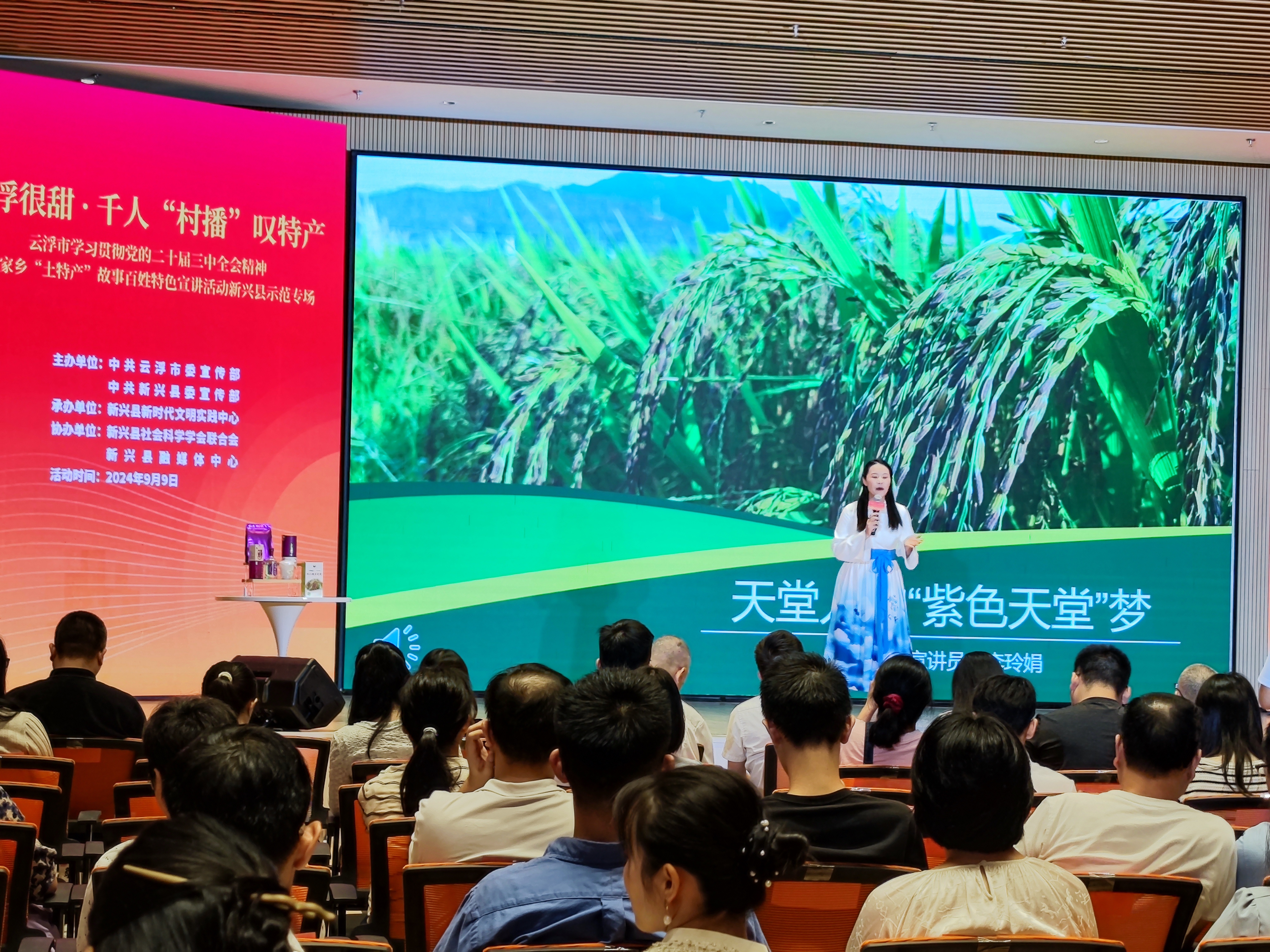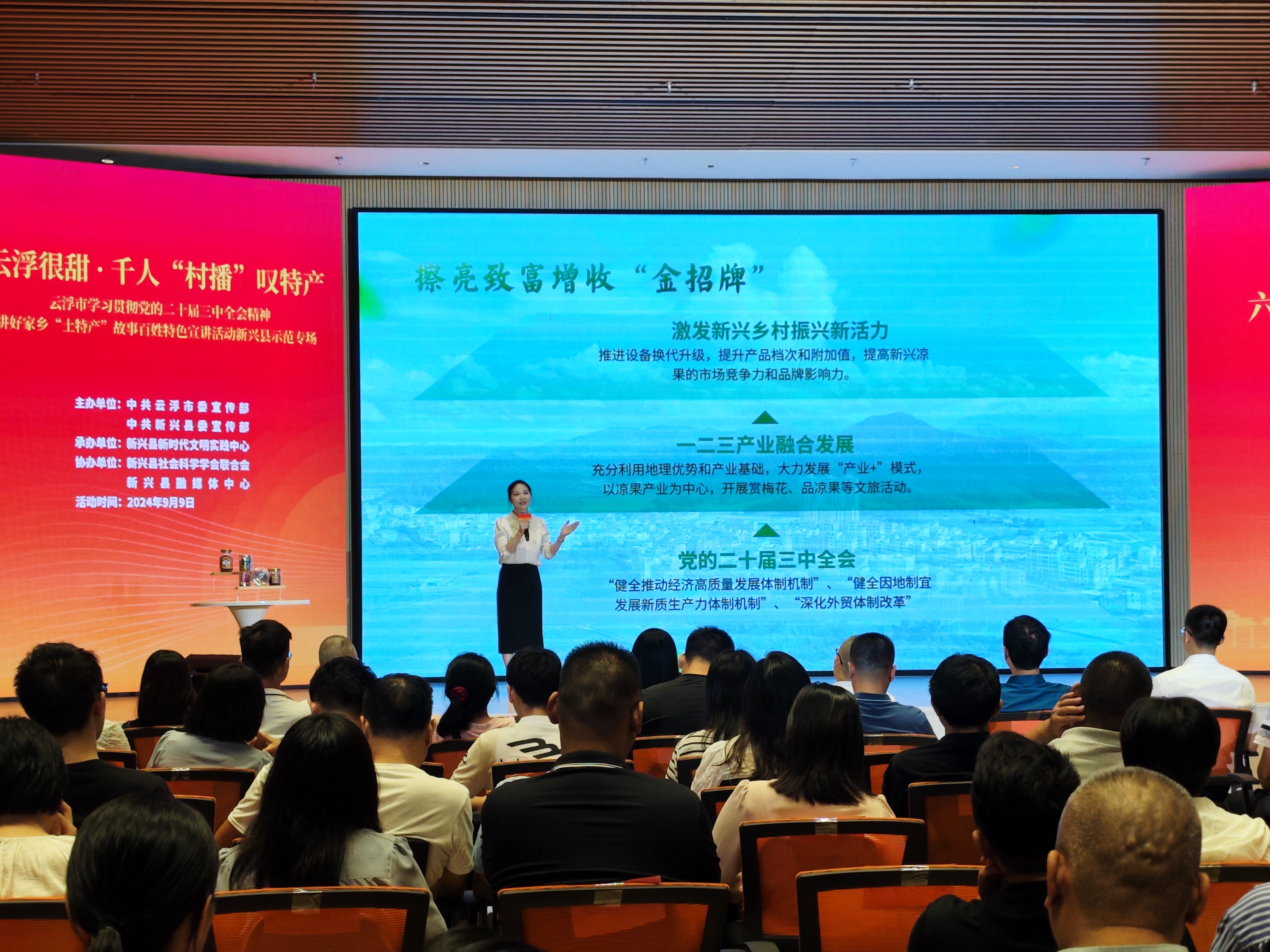 9月9日,“云浮很甜·千人‘村播’叹特产——云浮市学习贯彻党的二十届三中全会精神讲好家乡‘土特产’故事百姓特色宣讲”活动新兴县示范专场在新兴县新时代文明实践中心举办。