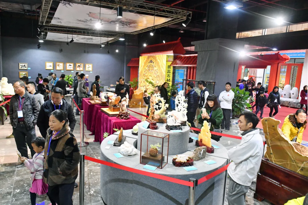 ●盛况:本届石展会展出面积4.8万平方米,参展企业370家,共设展位633个,4天签约金额达53.9亿元。石文化节展出面积达1.2万多平方米,设359个标准展位,展区分本地品牌区、石艺大师区、奇石精品区、书画区、高铁沿线经济带区、“一带一路”国际区等,6天交易额达6.2亿元。
