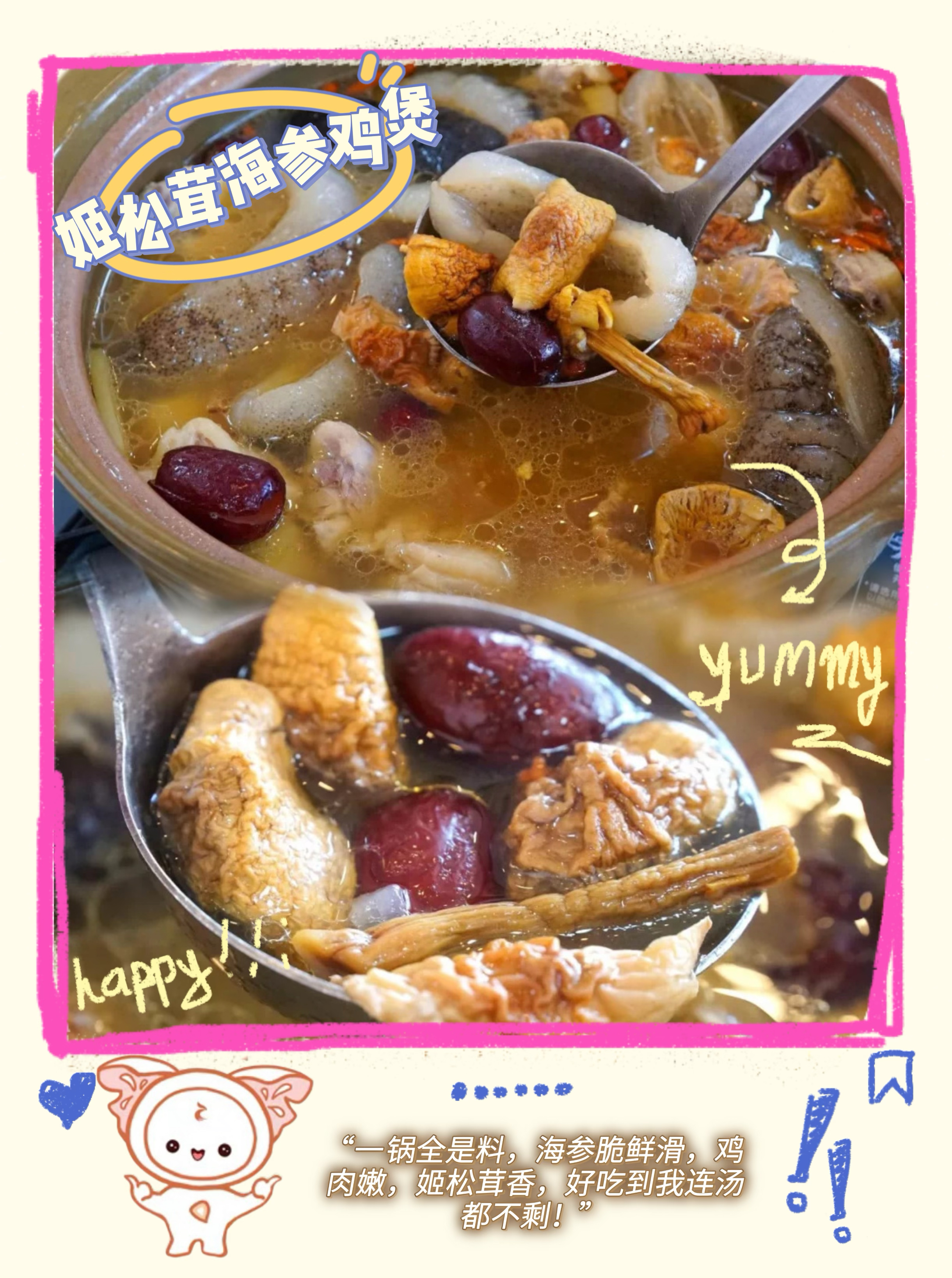 6️⃣姬松茸海参鸡煲(一锅全是料,汤都全喝光)