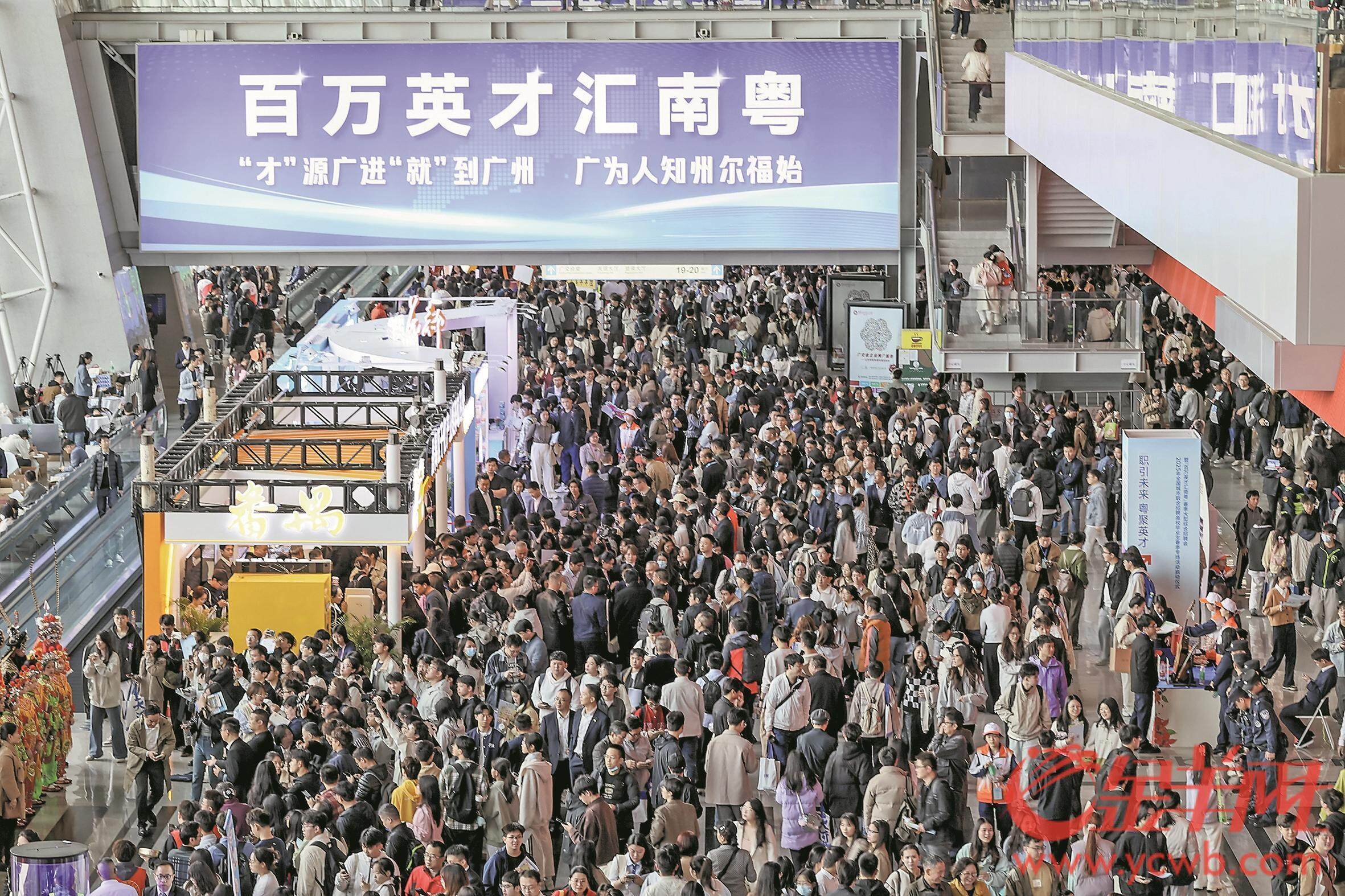 3月16日,在广州国际会展中心(琶洲展馆)内,一场名为“百万英才汇南粤”的招聘会以“顶流”姿态刷屏社交网络:报名应聘人数近12万,超1200家企业携5.12万个岗位现场揽才。