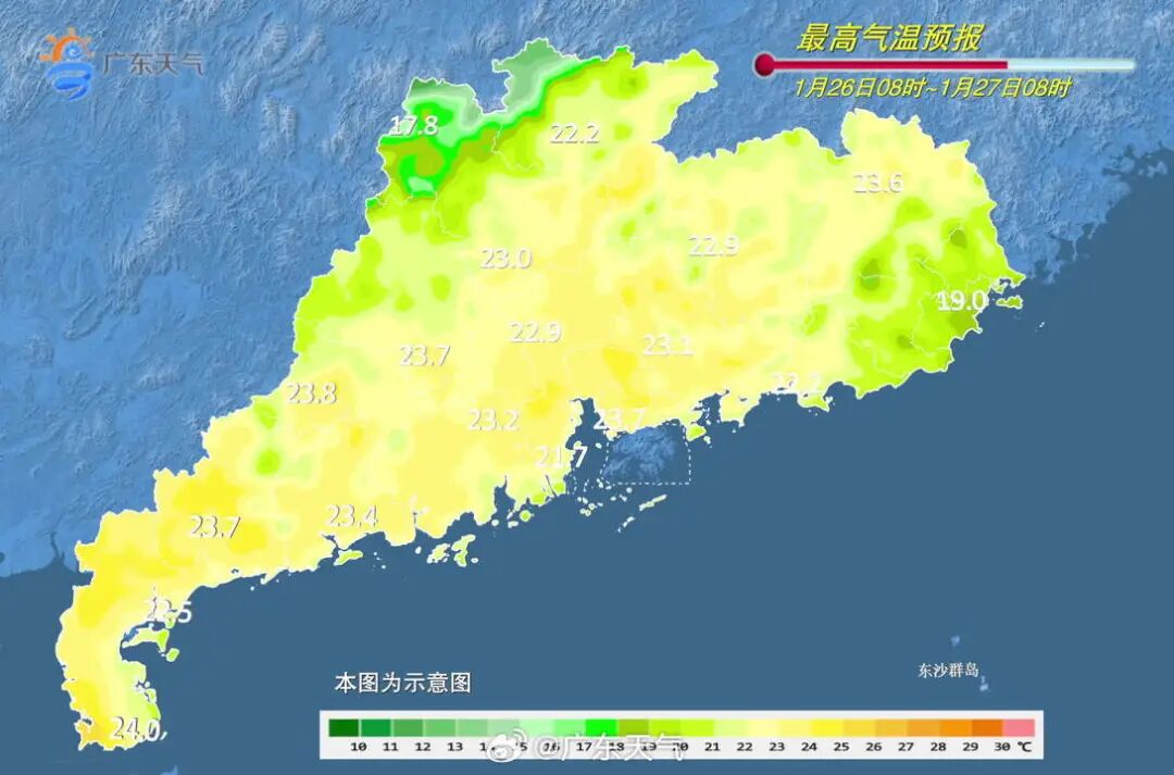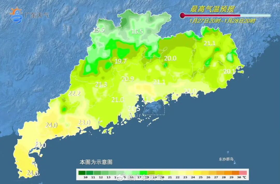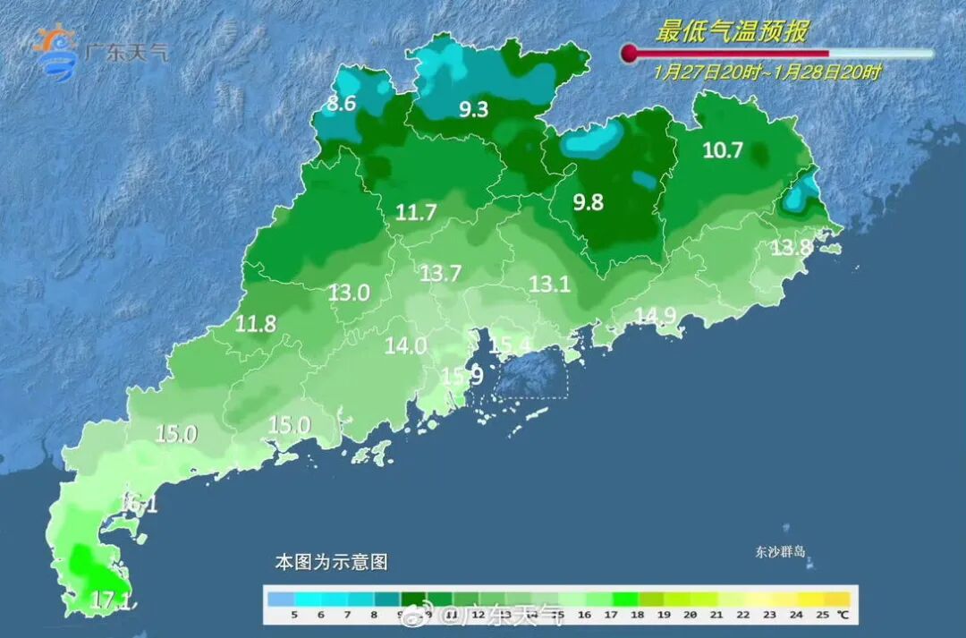 粤东市县零星小雨转多云,其余市县多云间晴天。最低气温:粤北市县7~10℃,雷州半岛15~18℃,其余市县11~15℃。