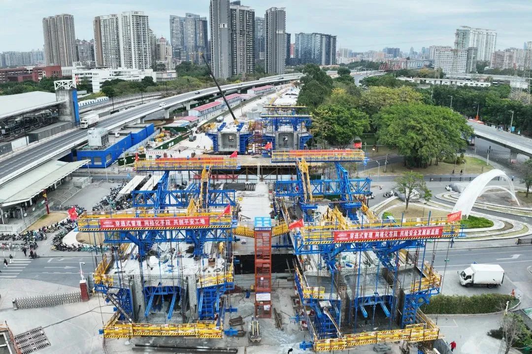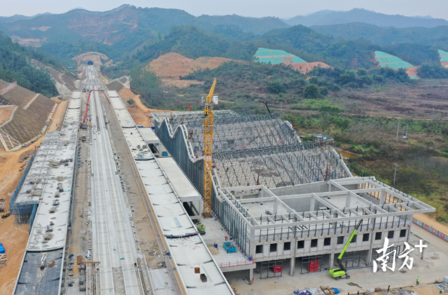由中铁十二局集团承建的该工程按“拆东保西、修新如旧”原则进行保护性改建,一边厢,既有珠江大桥西桥实行原址保护,在两侧新建两联连续钢桁梁跨越珠江白沙河;另一边厢,拆除既有珠江大桥东桥并原址扩建,新建一联连续钢桁梁跨越珠江白坭水道,桥位保留部分老桥墩,部分结构进行异地保护。 改建后,珠江四线特大桥作为“双桥”新物质载体,将延续民众心中的历史形象及城市情感记忆,接力续写百年“双桥”历史故事。 云浮段预计7月上旬全线贯通 广湛高铁站前四标段建设加速推进,跨越云浮市新兴县与阳江市阳春市,全长30.68公里。截至目前,主体工程已全部完工。当前,正全力推进无砟轨道施工和轨道铺设工作,无砟轨道施工完成96.83%,预计2月下旬全面完成。 此外,铺轨工程最高日铺轨量可达6公里,预计3月中旬到达云浮境内,7月上旬实现云浮段全线贯通。 图源:中铁十二局广湛铁路四标段项目部 阳春东站站房主体工程已完成 目前,阳春东站站房主体工程已完成,接下来施工单位将组织开展金属屋面和装饰装修施工,通往阳春东站的快速路将于6月底完成路面工程。 湛江北站站房雏形已现 据悉,日前广湛高铁湛江北站屋盖钢结构三区网架已顺利完成提升,标志着湛江北站工程建设在屋盖钢结构施工上取得了重大突破,为后续屋面及装饰工程奠定坚实基础。 湛江北站是采用线上式+线侧式站型的综合型站,站房总建筑面积10.5万平方米,车场规模6台12线(含正线2条),基本站台2座,岛式站台4座,为广湛铁路沿线粤西地区最大高铁站。 图源:湛江日报 期待早日开通