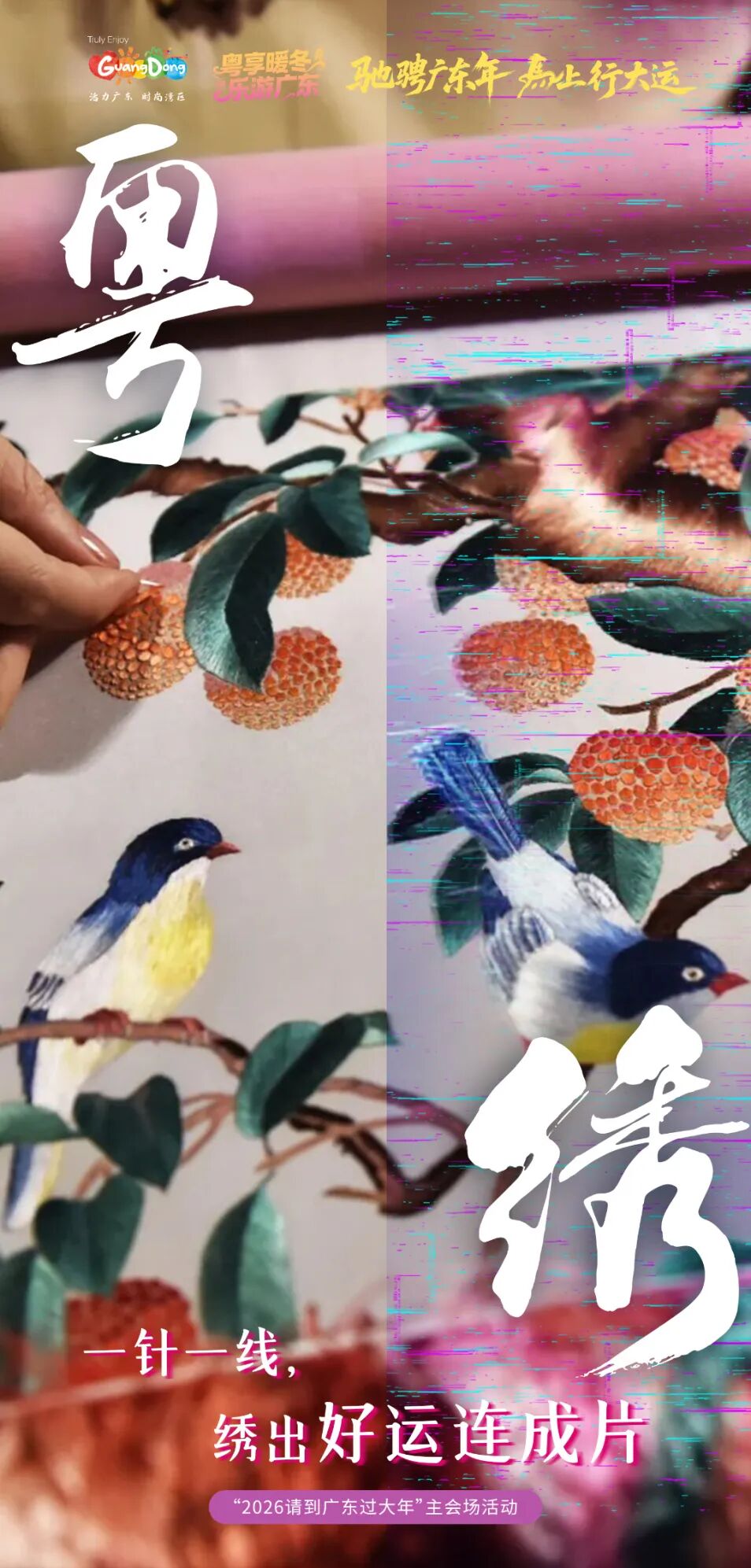 它藏在粤绣的丝线里,一针一线,绣出吉祥如意;