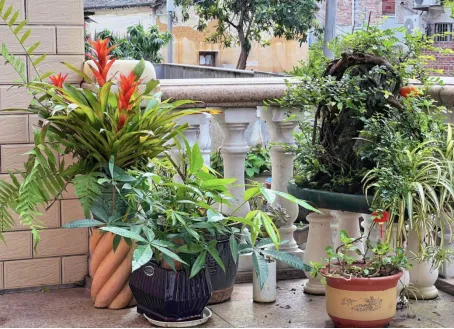 诗与远方,皆藏一院之间。富禄村退休的伍尚钦,与妻子回到家乡,在他的庭院中,花草呈现出别样的风采,时光如镜头记录下生活的美好。他种植的绿植品种繁多,从娇小的多肉植物到高大的乔木,无不展现出旺盛的生命力。他精心养护,修剪得当,阳台与围墙上的绿植更是造型别致,伍尚钦还善于利用废旧物品来装点庭院,那些看似无用的矿泉水瓶,在他的巧手下变成了别致的花盆,化身为独特的庭院装饰。同时,伍尚钦家庭经常跟邻居一起在自家庭院练书法、品茶,倡导的健康生活方式,宛如一阵柔和而清新的春风,无声无息地吹遍了整个村子,影响着周围邻居,成为大家学习的典范。