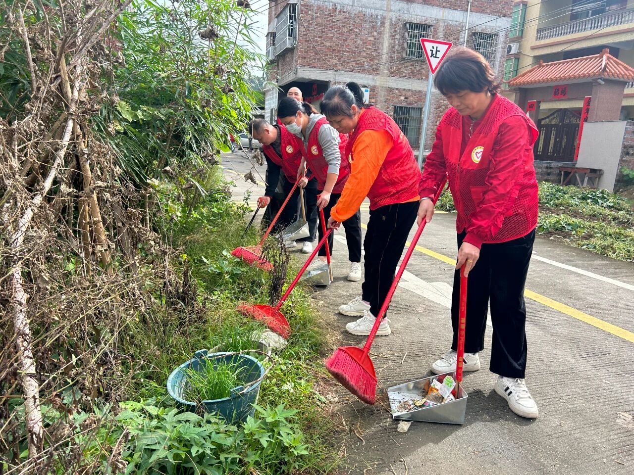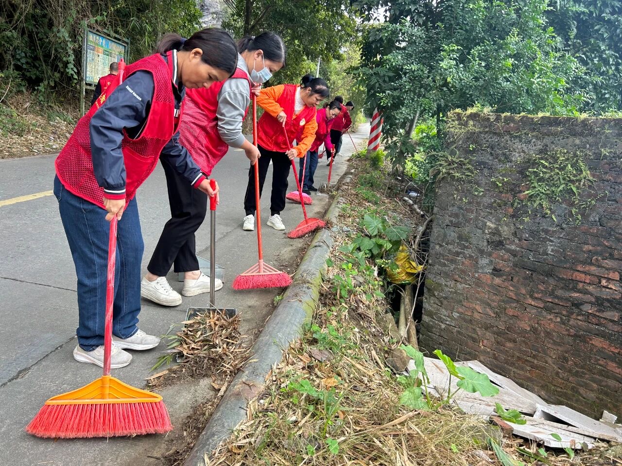活动中,青年志愿者们在村委和街道工作人员的统筹安排下,迅速投入环境整治工作。大家分工协作、默契配合,有的手持扫帚、铁锹清理村内主干道及公共区域的垃圾杂物,有的针对墙角、绿化带等卫生死角进行细致清扫,有的俯身拔除路边及闲置地块的杂草,不放过任何一处影响村容村貌的“顽疾”。志愿者们不怕脏、不怕累的身影成为村内一道亮丽的风景线。经过一上午的辛勤劳动,迳口村的主干道更整洁、公共区域更清爽,村容村貌得到明显提升。