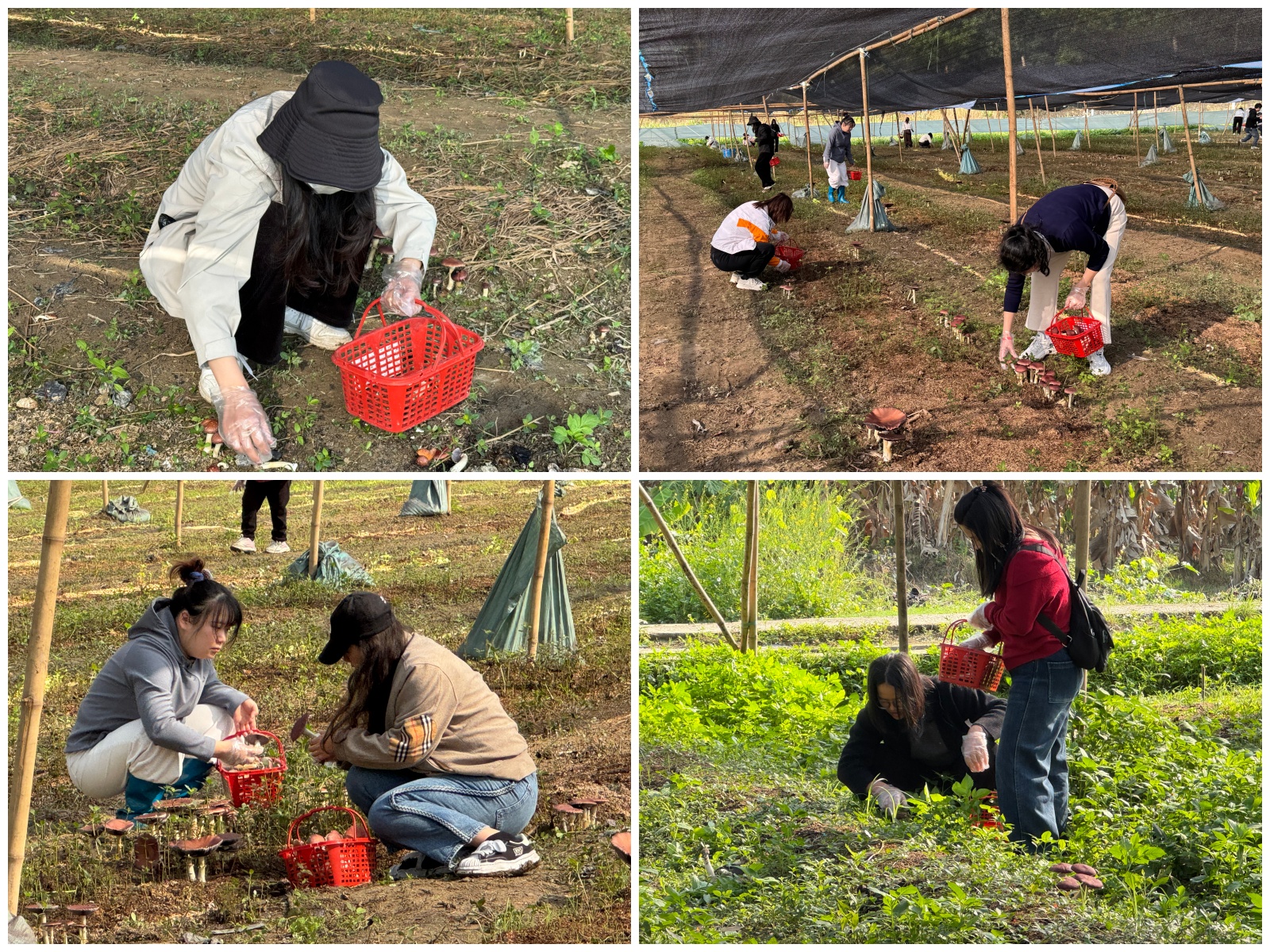 走进种植基地,菌香扑面而来,一簇簇红松茸破土而出,褐红的菌盖与洁白的菌柄相映成趣。基地负责人现场讲解红松茸的生长习性、采摘技巧及营养价值,大家一边听讲、一边观察,兴致勃勃地开启了采摘之旅。姐妹们穿梭田间,或交流生活点滴,或拍照记录美景,欢声笑语中洋溢着节日的喜悦。置身自然怀抱,大家放松身心、畅叙情谊,感受泥土芬芳与丰收的满足。