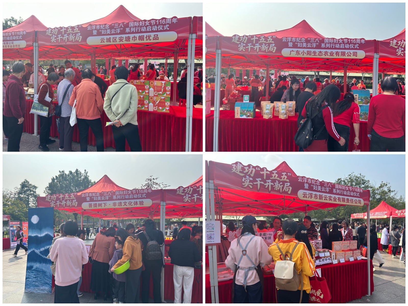 3月7日上午,云浮市纪念“三八”国际妇女节116周年暨“妇美云浮”系列行动启动仪式在市人民广场举行。云城区妇联积极响应,组织多家本土企业参展,在巾帼优品展销专区集中展示“妇”字号特色产品,助力“百千万工程”,彰显云城女性创新创业风采。
