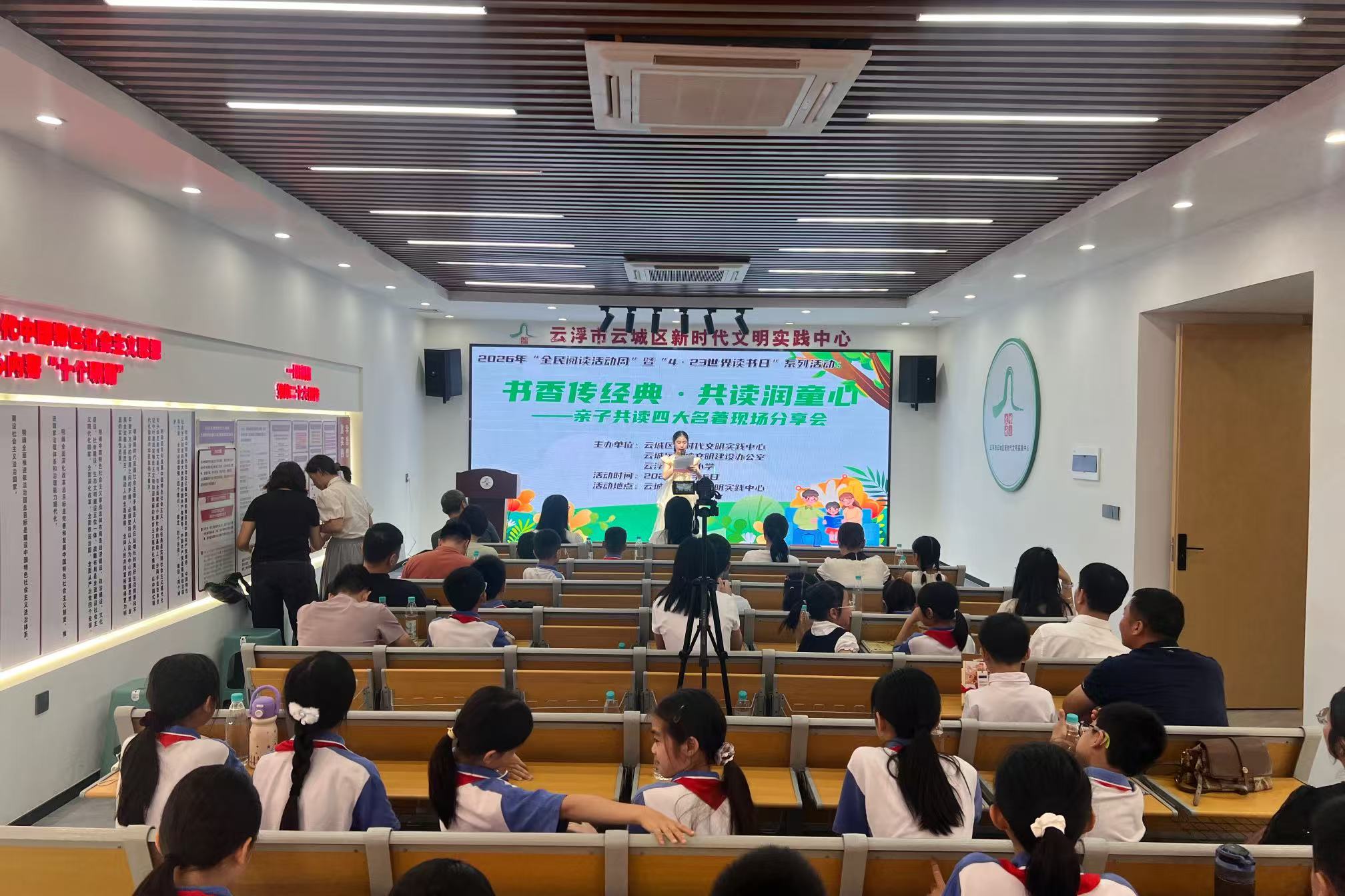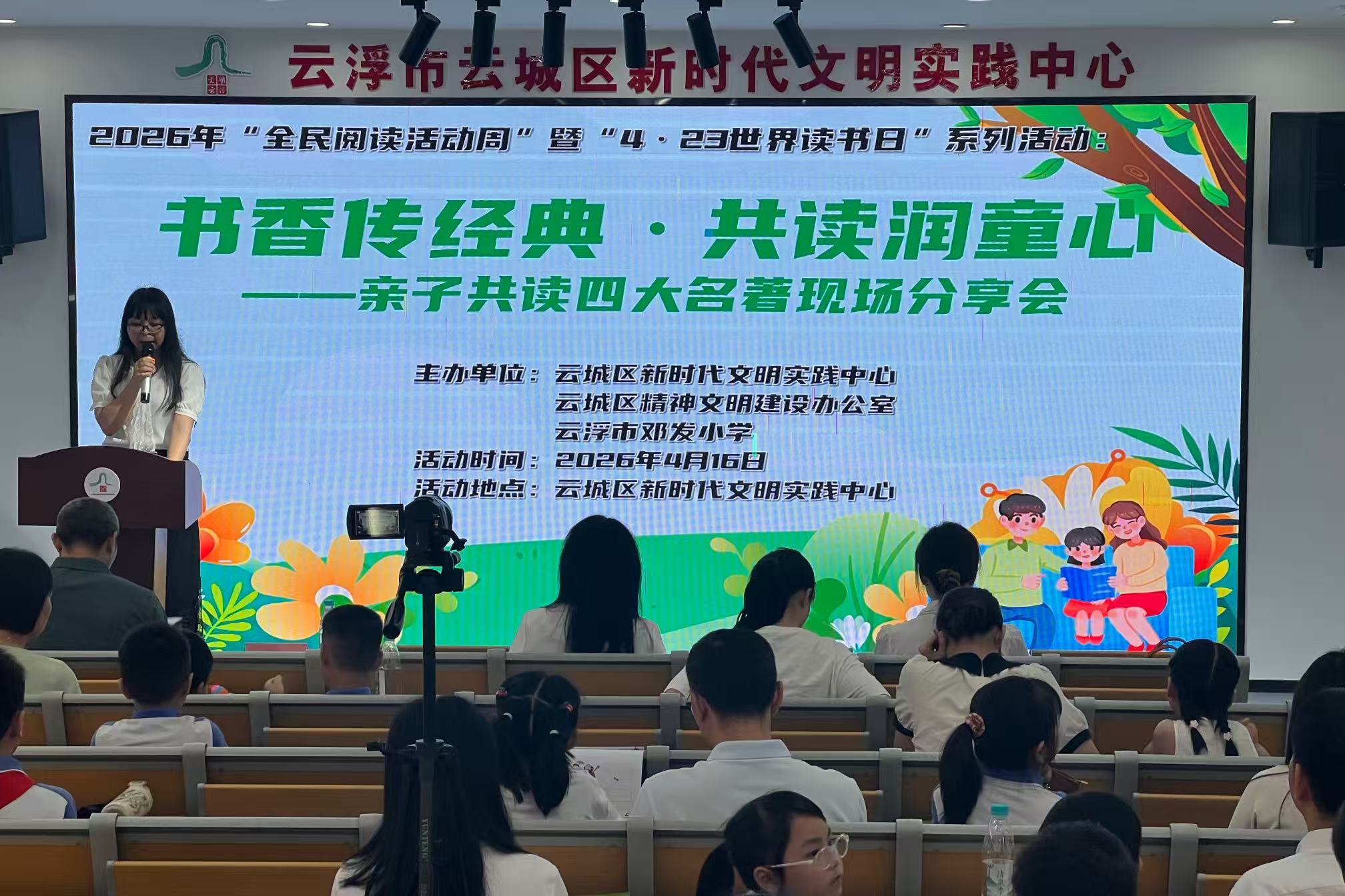 书香润童心,共读伴成长。4月16日下午,云城区新时代文明实践中心、云城区文明办、云浮市邓发小学联合举办了2026年“全民阅读活动周”暨“4·23世界读书日”系列活动之“书香传经典,共读润童心”亲子共读四大名著现场分享会。12组亲子家庭欢聚一堂,以书为媒、以阅为伴、以读为乐,共赴春日书香之约,共传城乡文明新风。