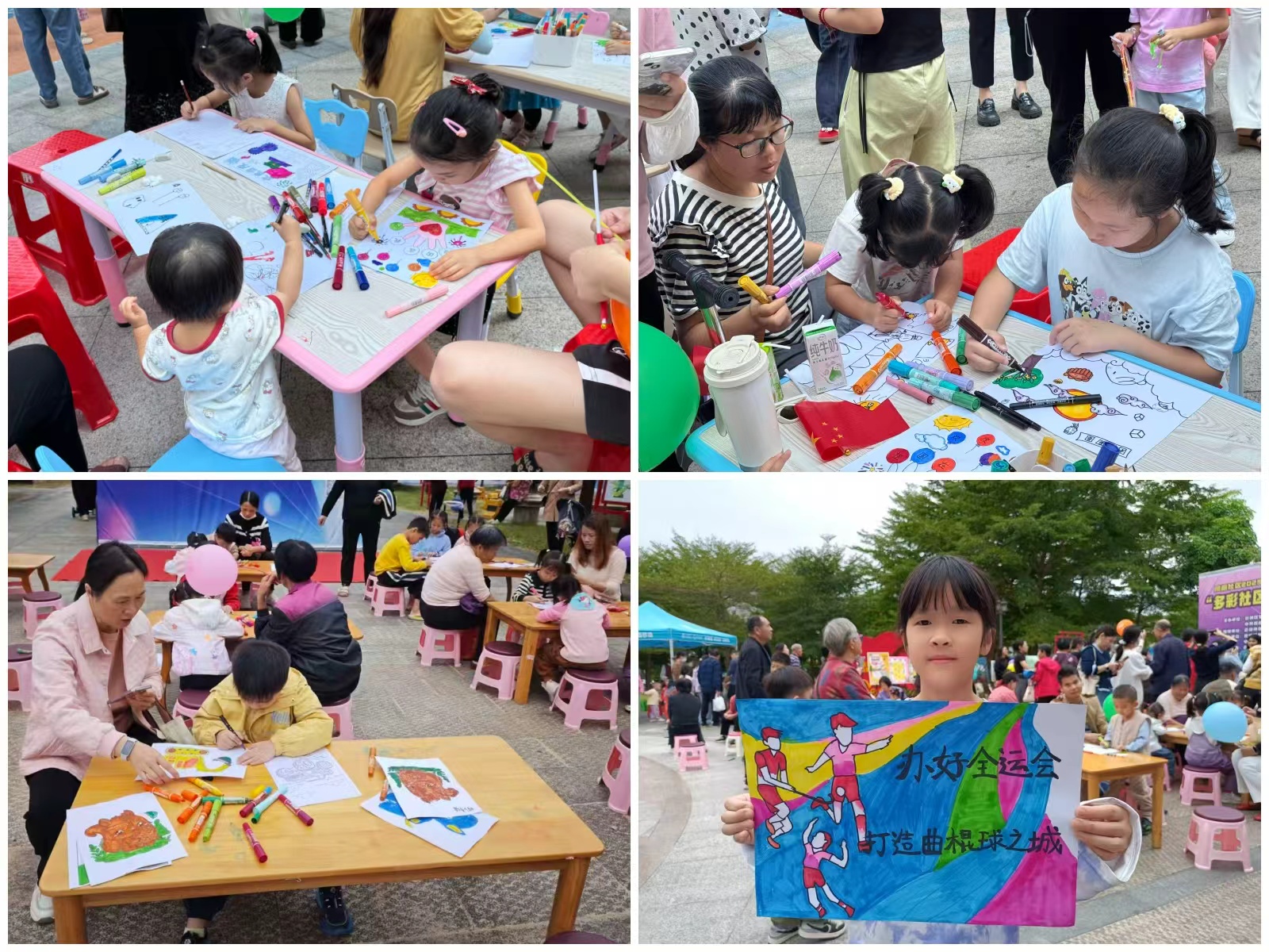 活动现场,专业艺术氛围与童真创意交相辉映。巾帼志愿者老师们现场示范构图技巧,手把手指导调色运笔;孩子们化身“小画家”,用明快色彩勾勒出梦幻城堡、“我心中的中国”等童趣图景,每幅作品都洋溢着对生活的热爱。富宁社区以“欢度国庆”为主题核心,鼓励孩子们通过画笔抒发对祖国的热爱,抽象水墨与写实素描在展示区相映成趣。凤凰社区则以文艺为媒融入全运元素,巾帼志愿者带领居民开展运动主题手作,传递全运热情。
