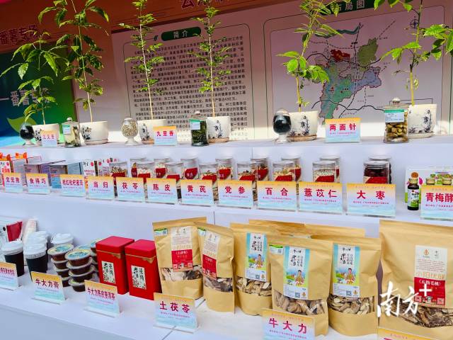 作为国家级现代农业(南药)产业园和省级现代农业(花卉)产业园所在地,现场还有发财树、兰花等各色花木展销,牛大力、土茯苓、金线莲等康养加工产品等候买家光顾……