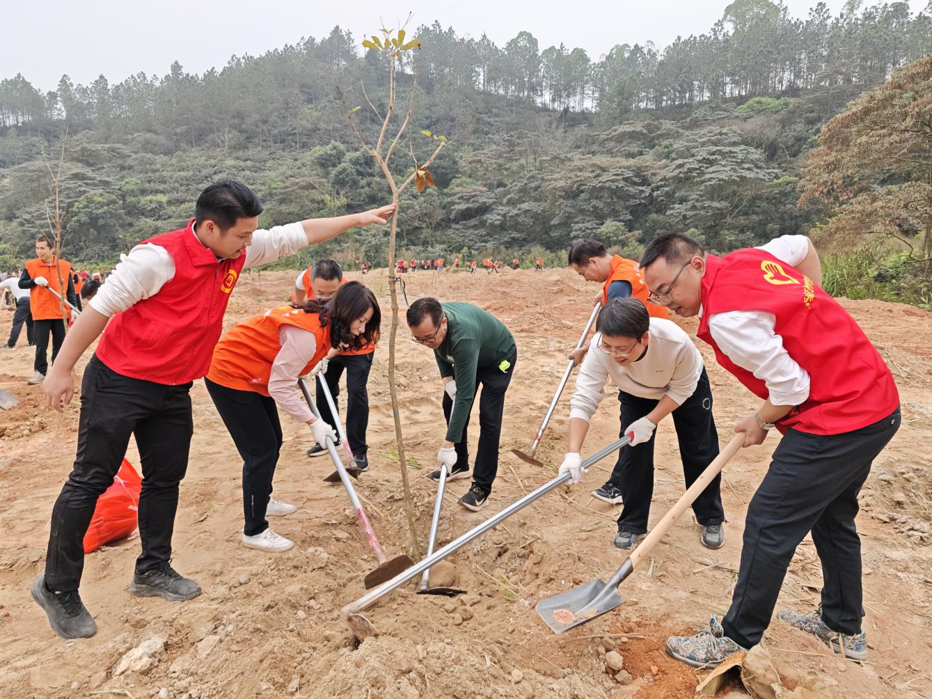 为深入推进绿美云浮生态建设,大力实施全民爱绿植绿护绿行动和乡村绿化三年行动,2月25日上午,云城区腰古镇组织开展2026年推进绿美云浮生态建设义务植树示范活动,驻镇帮镇扶村组团单位、挂钩联系区领导、区挂点联系单位、镇村干部及党员志愿者等共200多人参加活动,以实际行动为乡村增绿添彩,助力“百千万工程”走深走实。