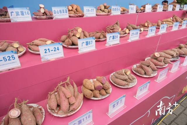 现场展示的不同番薯品种。 南方+ 王嘉豪 拍摄