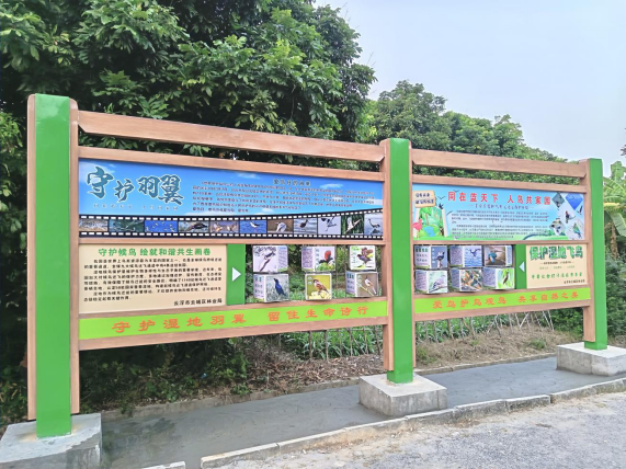项目坚持生态效益与民生效益同频共振,以基础设施升级为纽带,将湿地打造成便民惠民的“生态客厅”。200米步道汀步精心改造,蜿蜒穿梭于绿意之间,让群众得以近距离触摸湿地肌理、感受自然野趣;80平方米桥体披上“彩绘盛装”,人文笔墨与自然景致交融共生,为湿地增添了浓郁的文化韵味;20米防护栏杆拆除更新,筑牢安全防线的同时,也让景观视野更显通透。此外,19个不锈钢宣传牌错落布置,涵盖党建引领、小微湿地科普等内容,其中特异宣传牌5个、常规宣传牌14个,搭配专属湿地标志牌与导览图,实现了党建赋能、科普宣教与便民服务的有机融合,让群众在闲庭信步中解锁生态知识,沉浸式体验生态之美。