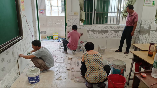 政府主导,搭好框架保质量。布务小学紧邻车流汹涌的主干道、每逢汛期校园排水渠积水问题频发;红光小学旧教室墙体剥落、夏季闷热如蒸笼;马岗小学教学楼顶棚存在安全隐患、护栏出现裂缝、厕所系统陈旧堵塞。面对三校一系列的积年顽疾,河口街道党工委以“百千万工程”为契机,积极动员社会力量共同参与、精准施策,街道主要领导实地调研走访后,召集相关学校负责人、属地村委干部、教育好人队伍代表、村民代表,利用“好人议事坊”等平台,征集校园环境优化建议,激发社会各界群众的“主人翁”意识,让群众从“受益者”变为“建设者”。