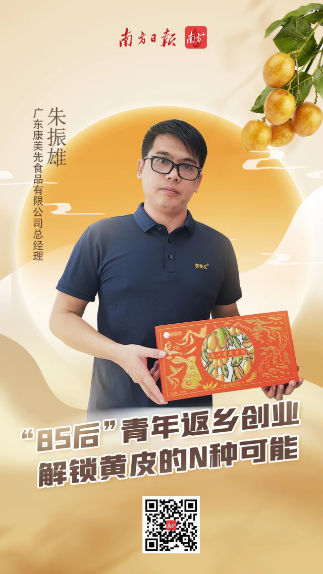 朱振雄是云浮郁南小有名气的返乡创业青年。2010年至今,他成立了广东康美先食品有限公司,研发出黄皮饼、黄皮酱、黄皮月饼等黄皮深加工产品,不断解锁黄皮的N种可能,日渐成长为郁南无核黄皮产业现代化的引领者。