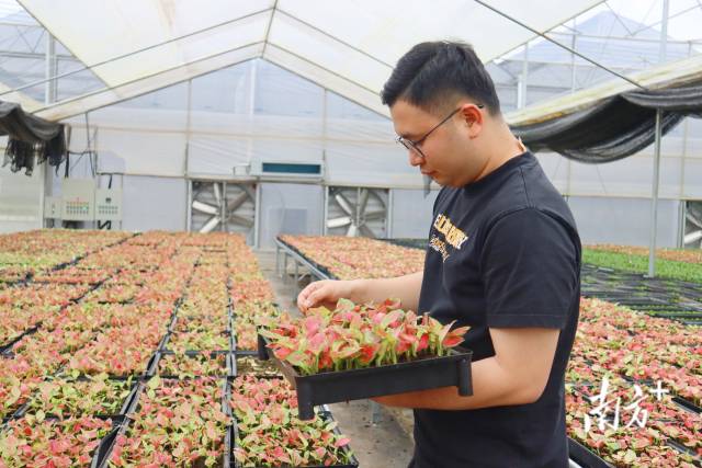 春季午后,在云浮市云安区高村镇华创农业科技有限公司(下称“华创农业”)花卉温室大棚内,花卉长势甚好,彩叶芋、龙舌兰等各类花卉布满其中。而在另一边会客的小木屋中,销售经理谢卓志的电话正响个不停,他时刻关注着花卉市场的情况——初春,正是花卉销售的关键时节。