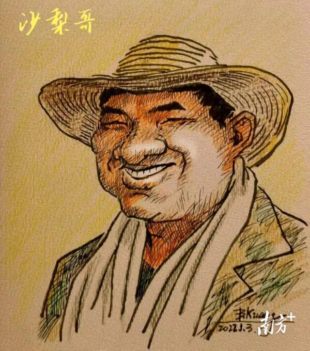 头戴草帽,脖子上挂着毛巾,脸上洋溢着淳朴的笑容……这是朱郁荣的“漫画形象”,也是“沙梨哥”的专属商标。