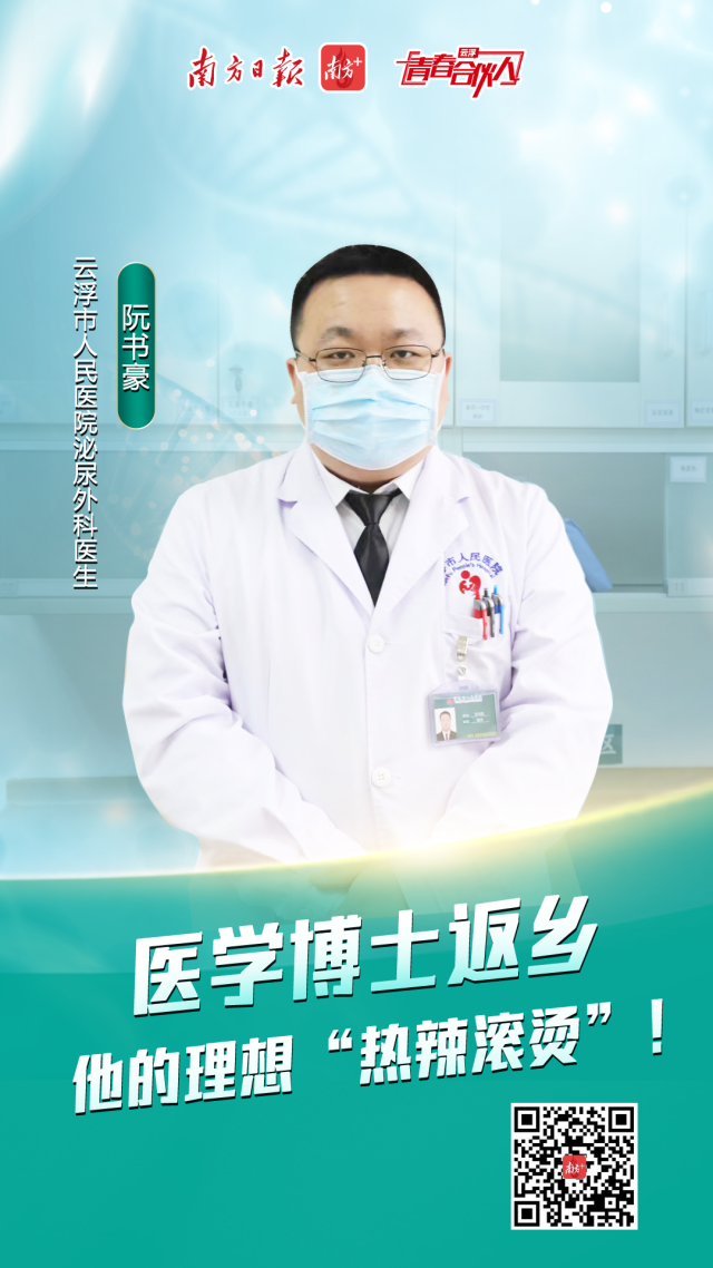 此时的他,在中南大学湘雅医学院临床医学本博连读十年后,入职云浮市人民医院泌尿外科即将一年。从医学博士到新手医生,他的理想一直“热辣滚烫”——希望在未来能够有机结合科研探索与临床实践,更好地为病人的生命健康保驾护航。