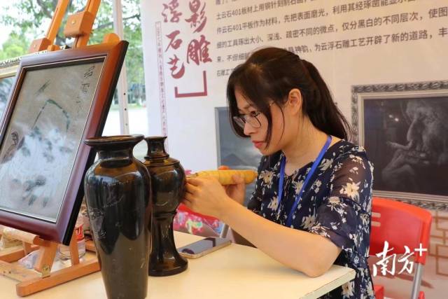 如今,李紫君在云城区文化部门任职。在城区的各类非遗文化活动中,她不仅是活动的工作人员,更是石艺的展示者。前不久的云浮市番薯节,人流如潮,李紫君带着作品来到现场。像这样让影雕作品“露脸”的机会,她格外珍惜,“影雕艺术要获得认同,需要传播。”