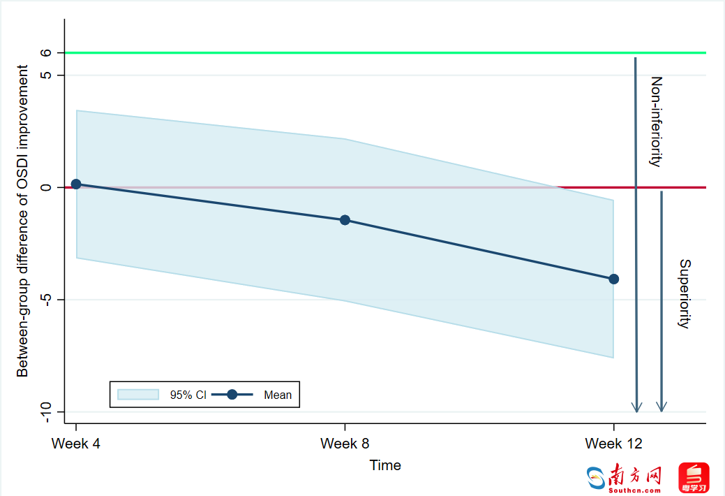 在干预8周后,“笑的训练”组和0.1%玻璃酸钠组患者的症状及体征均有所改善,且在主要结局指标眼表疾病指数评分(一种衡量干眼主观严重程度的指标)中,“笑的训练”组不亚于0.1%玻璃酸钠组,甚至在一些体征改善中,“笑的训练”优于0.1%玻璃酸钠。