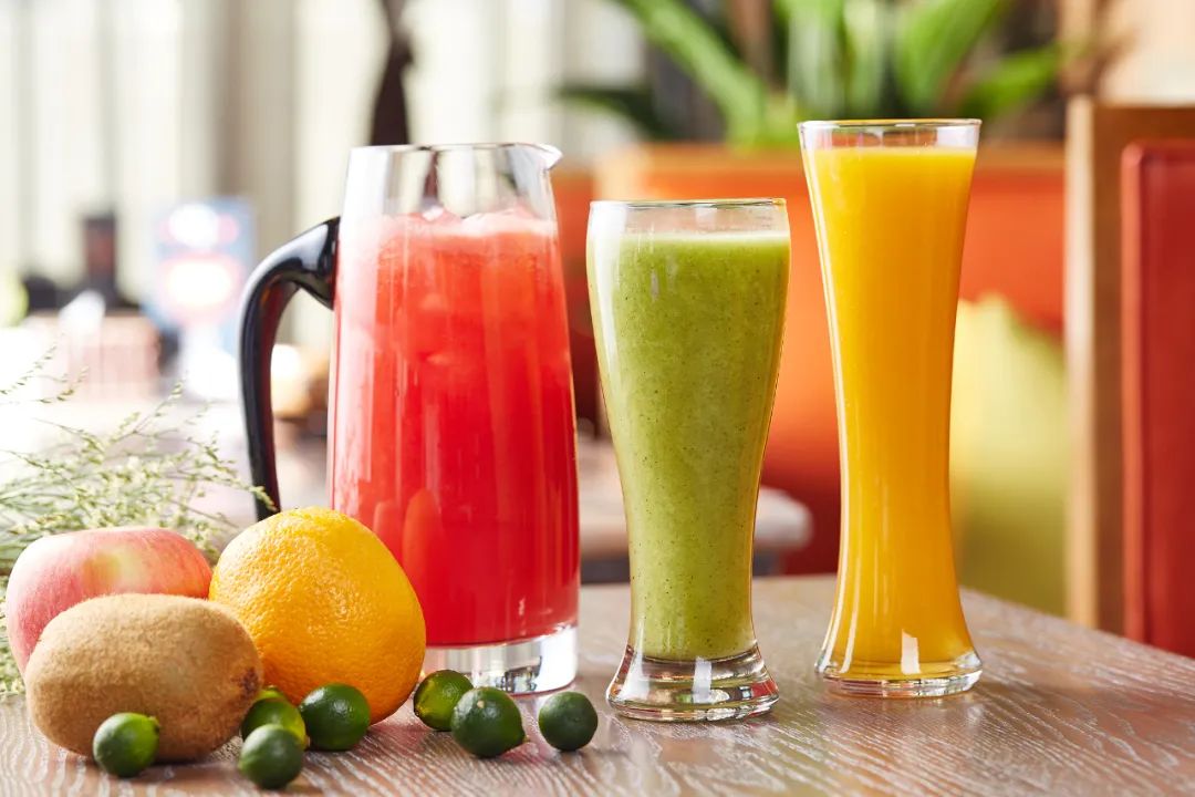 水果不宜榨汁喝。水果在榨汁过程中,损失了很多膳食纤维、维生素C和抗氧化物质。而且,果汁的含糖量比水果更高,像苹果汁、橙汁,含糖量都在8%以上,葡萄汁的含糖量更是达到15%~20%,接近可乐的两倍。
