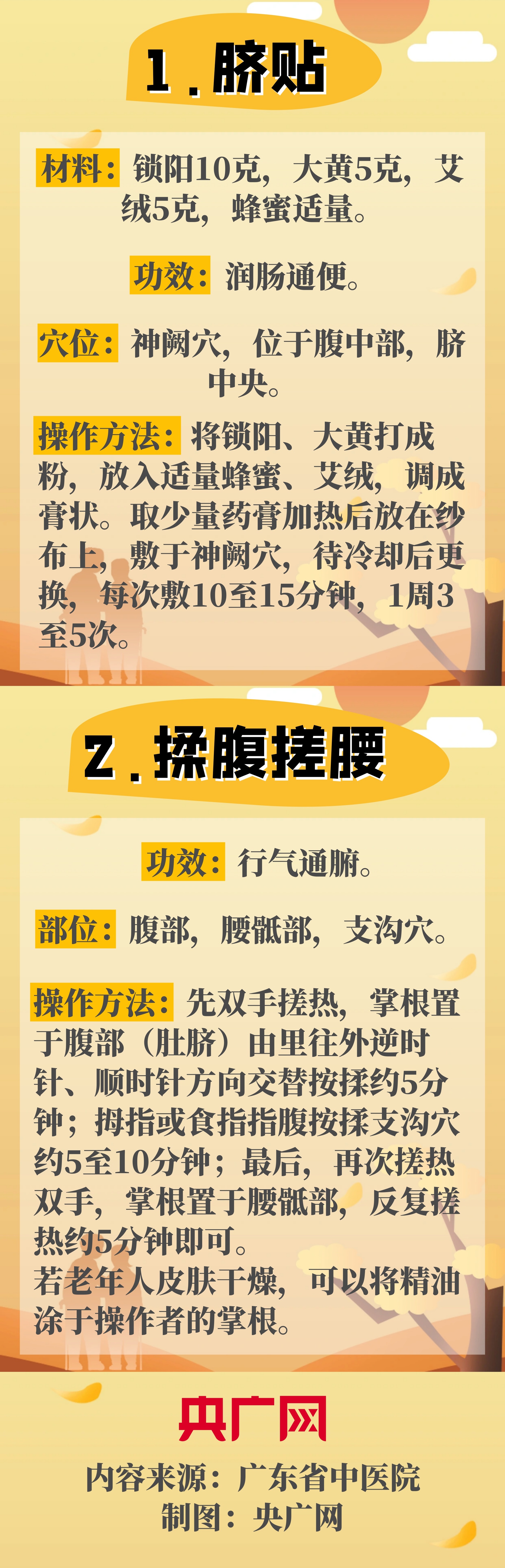 随着秋分的悄然离去,寒露的脚步渐渐临近。在秋季,大自然开始变换色彩,气温也逐渐转凉。脐贴、揉腹搓腰……一个个看似简单的方法,却蕴含着养生的大智慧。那么,如何通过脐贴、揉腹搓腰进行秋季日常保健呢?广东省中医院张忠德全国名中医传承工作室副主任医师金连顺给出解答,带你一图读懂!