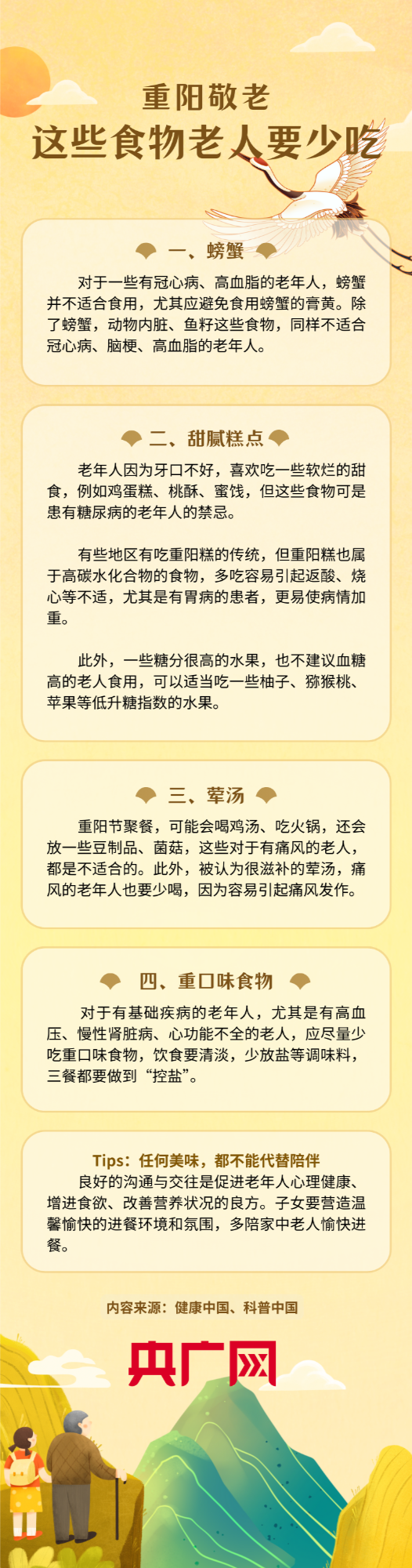 人间百善孝先行,九九重阳敬老情。每逢重阳节,很多子女会回家看望老人,带着满满孝心还有大包的礼品和食物。殊不知,这些孝心里面,可能暗藏着影响老人健康的隐患。